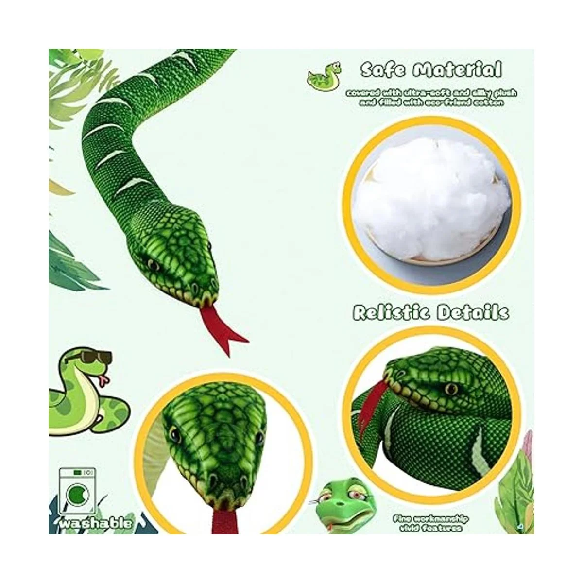 YOHAKI Peluche de serpiente, peluche de serpiente, juguetes de Halloween, juguete de peluche de serpiente para niños en Navidad cumpleaños, lavable, pitón de árbol verde, 59 pulgadas