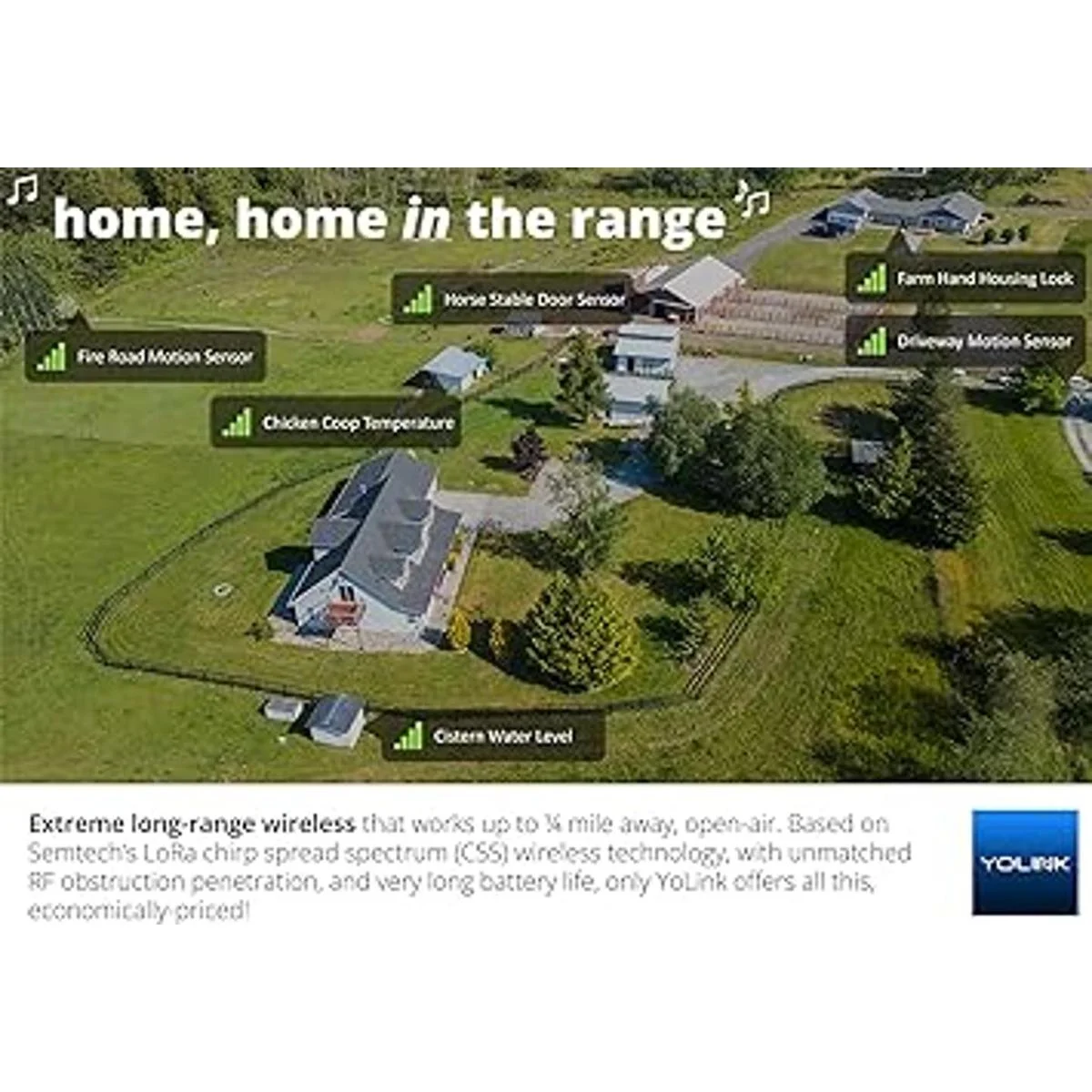 El rango inalámbrico más largo del mundo: alimentado por la tecnología LoRa, el sistema de largo alcance pero de bajo consumo ofrece el rango de recepción más largo de la industria en el mercado 1/4 millas. Nuestra cobertura de largo alcance permite su uso en áreas difíciles para la mayoría de los sistemas WiFi residenciales, como sótanos, porche al aire libre, áreas de patio, cobertizos, garajes independientes, incluso dependencias remotas de tu propiedad.