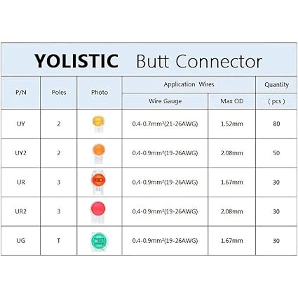 YOLISTIC Paquete de 201 conectores de alambre surtido incluye UY, K1, UY2 K2, UR K3, UR2 K3, y UGK5 empalme de extremo con alicates de prensado