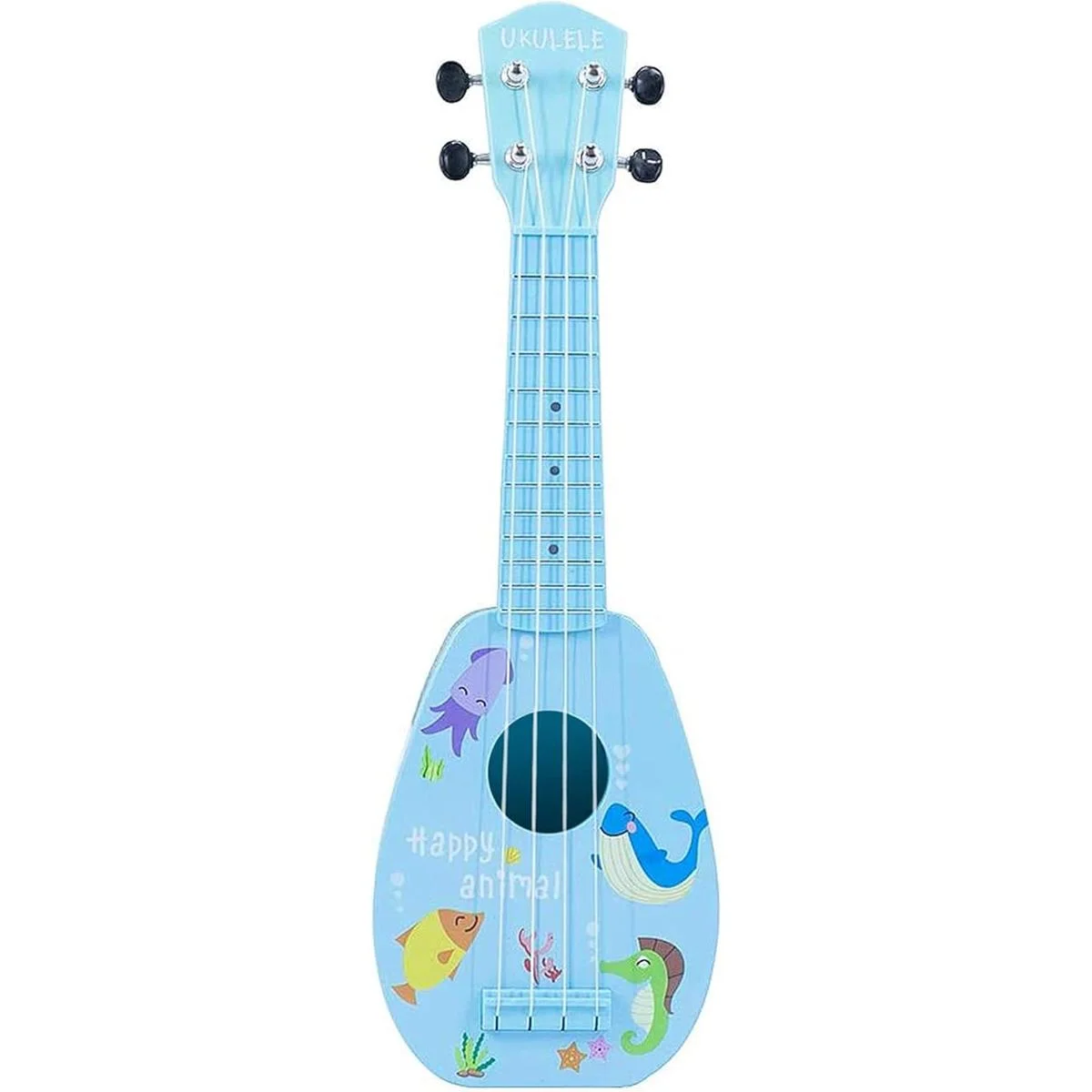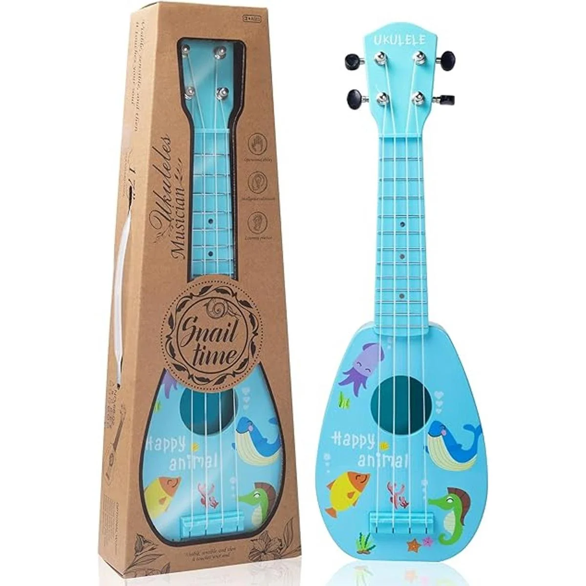 YOLOPLUS Juguete de guitarra de ukelele para niños de 17 pulgadas, 4 cuerdas, mini instrumentos musicales para niños, juguete educativo de aprendizaje para niños pequeños, principiantes, mantener el tono antiimpacto, puede jugar con púascorreatutorial primario