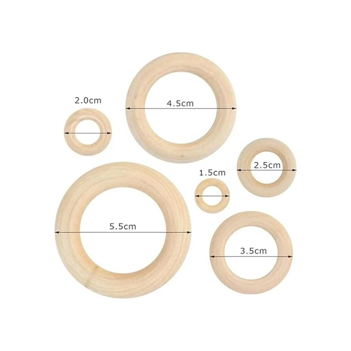 Cantidad del paquete: 60 anillos de madera, 6 tamaños diferentes