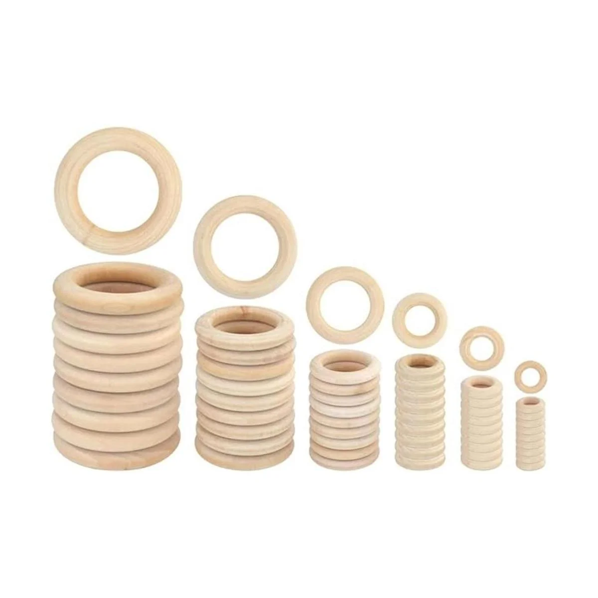 Yolyoo 60 anillos de madera natural para manualidades, colgante de anillo y conectores para hacer joyas, 6 tamaños