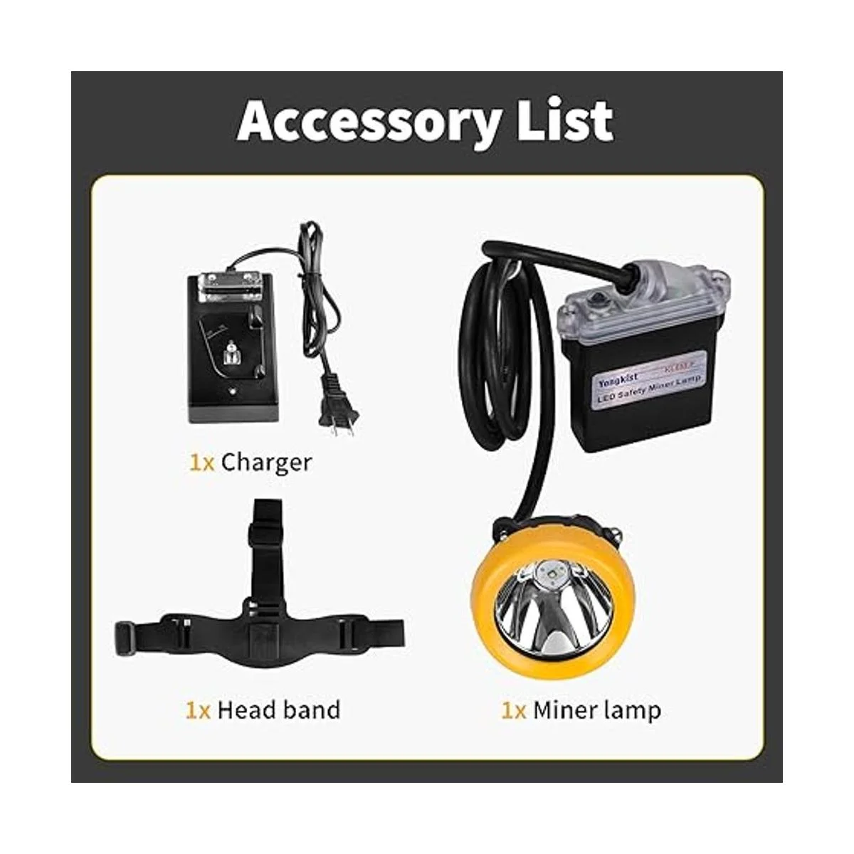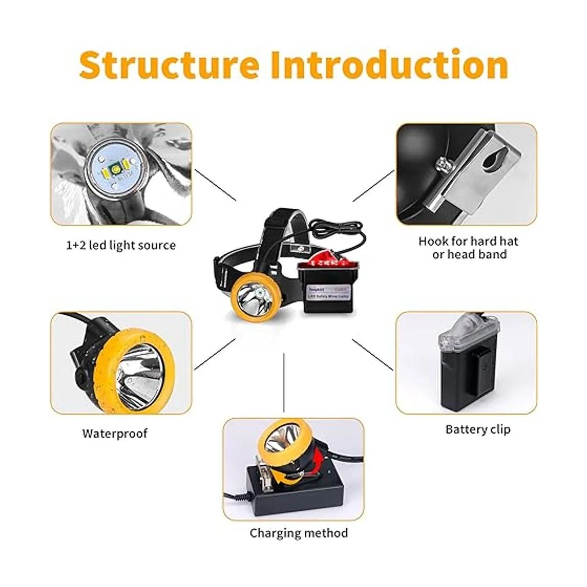 Yongkist Luz de minería de seguridad 12 LED de minería de carbón luces paquete de batería con luz LED impermeable cabeza antorcha lámpara de minería faro a prueba de explosiones sombrero duro Cap minería faro KL6M.Ftamaño mediano