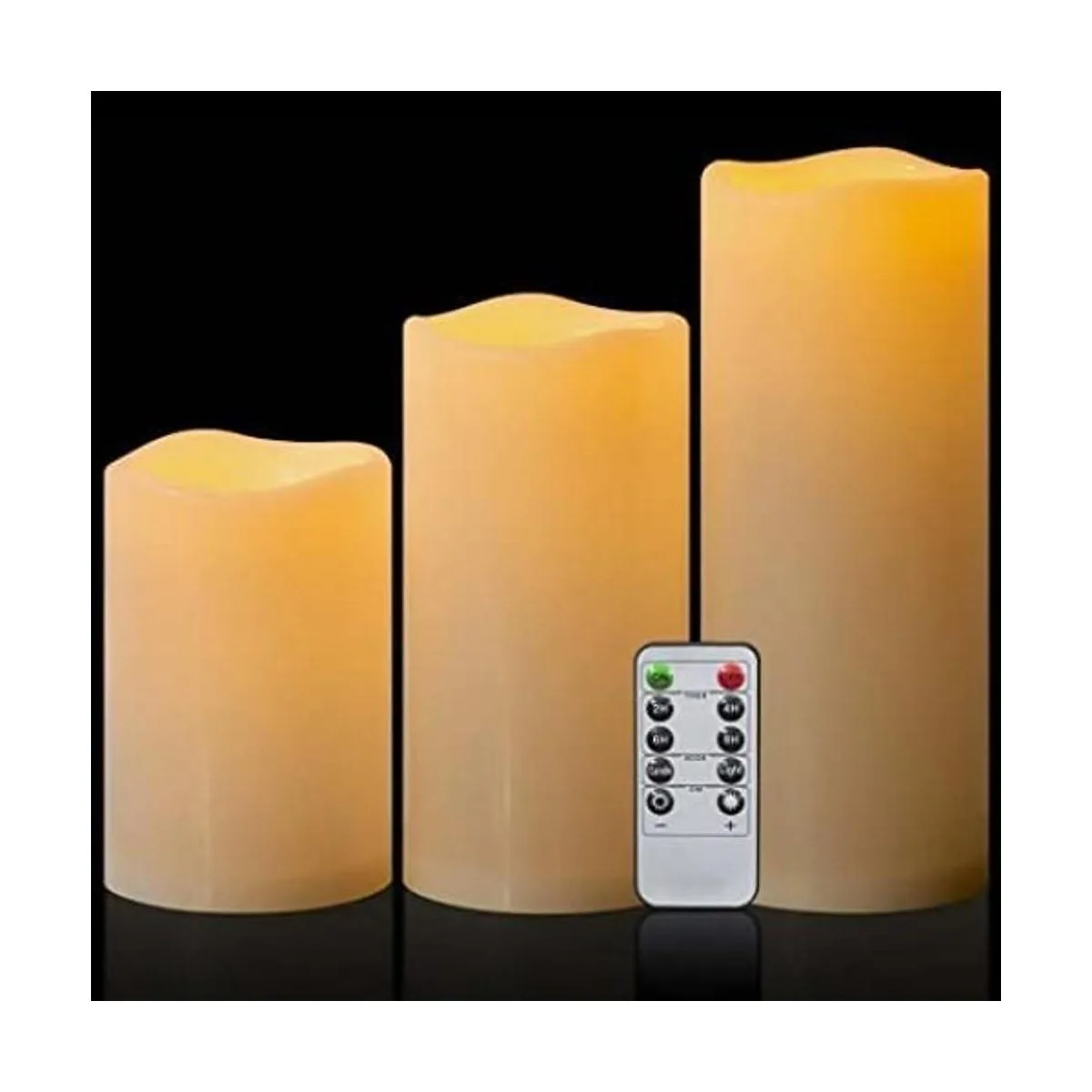 Yongmao Velas impermeables sin llama para exteriores, 6 pulgadas, 8 pulgadas, 10 x 4 pulgadas, funciona con pilas, luces LED parpadeantes con control remoto y temporizador para linternas interiores y exteriores, de larga duración, color marfil, grande, juego de 3