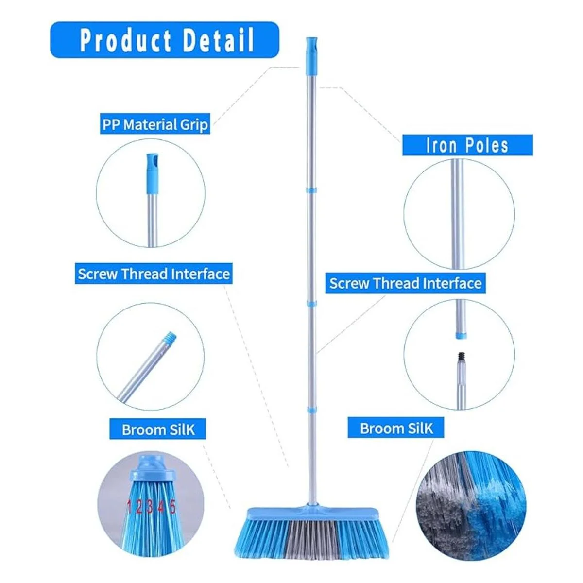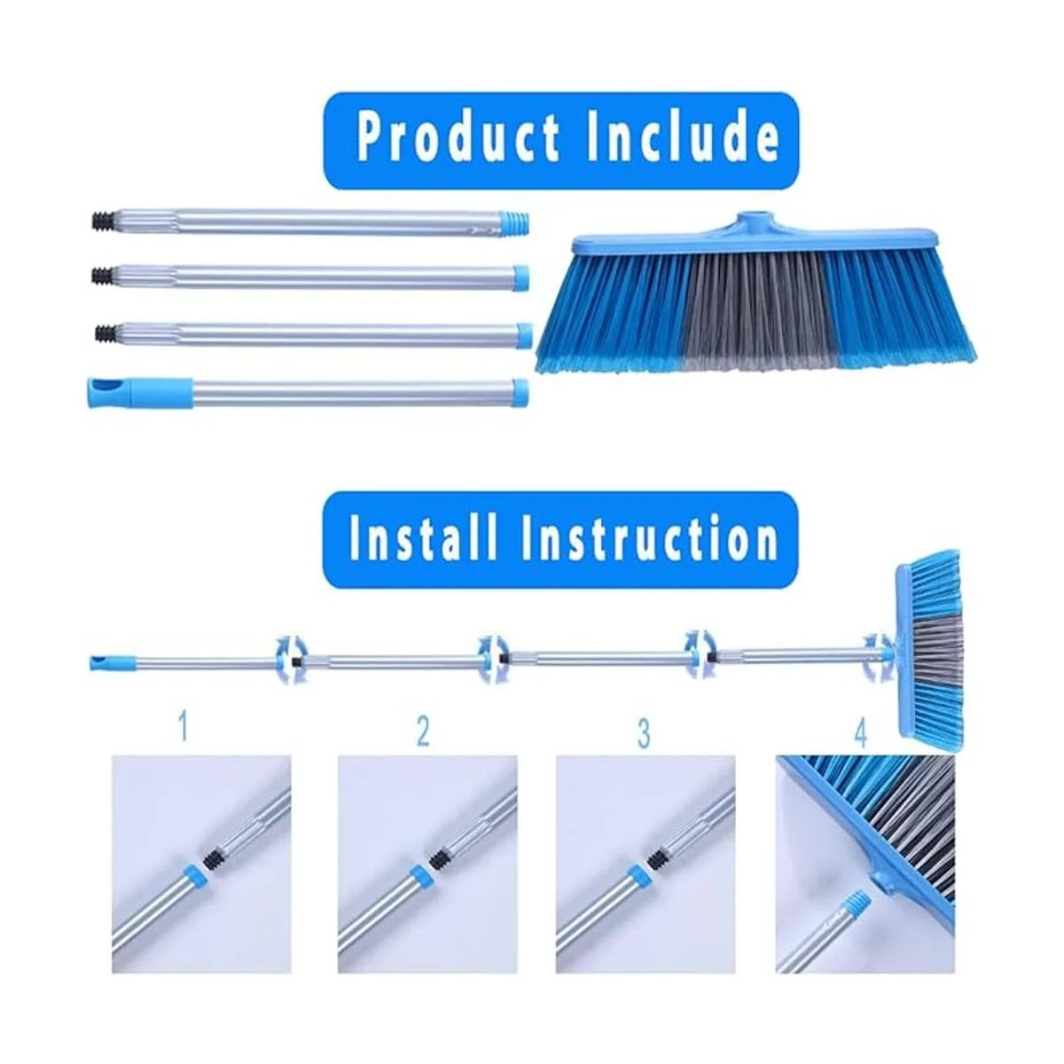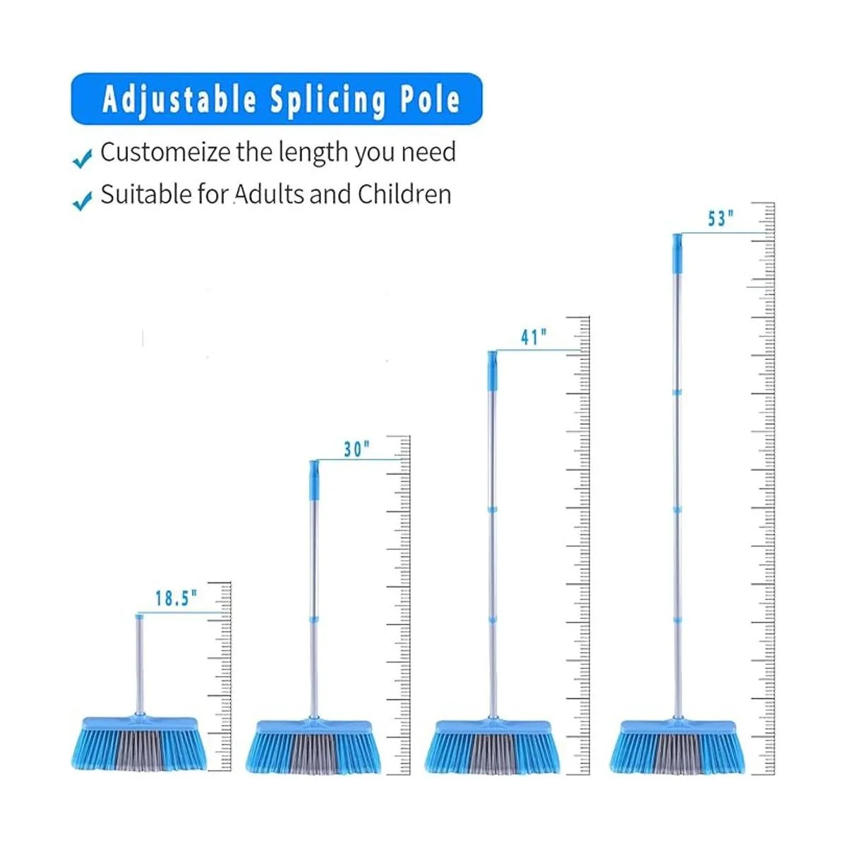 Escoba de mango largo de 53 pulgadas: 4 postes de hierro integrados, la altura de la escoba es ajustable. Las escobas se pueden ajustar de 18.5 a 53 pulgadas. Es lo suficientemente largo como para evitar que se agache, lo que hace que la limpieza de la casa sea más fácil.