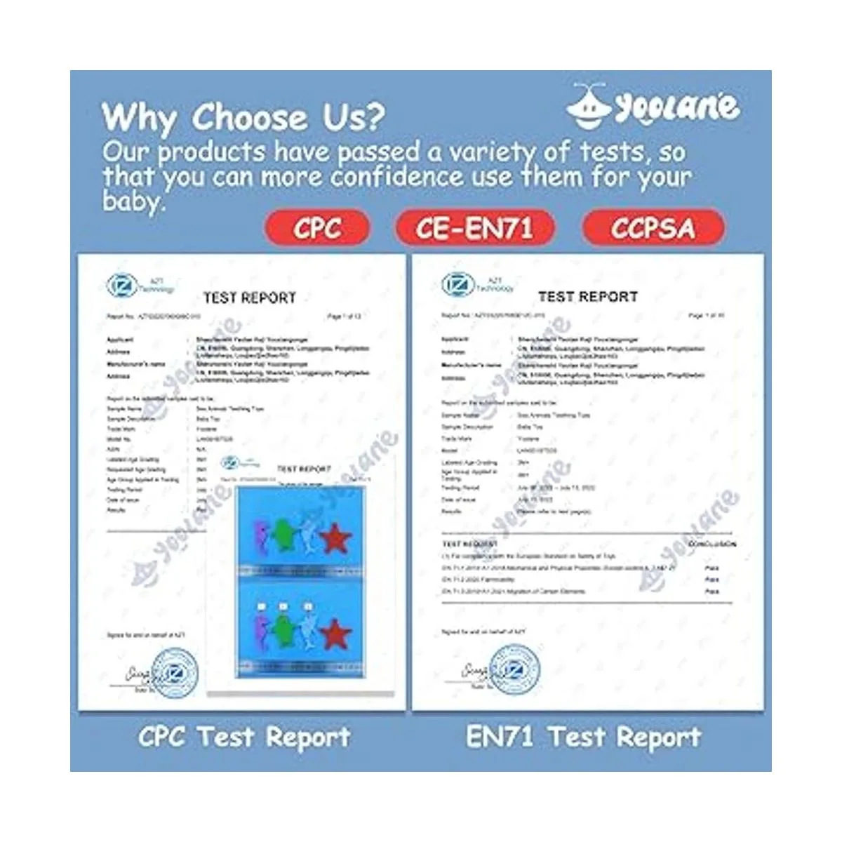 Material seguro y saludable: material de silicona 100 de grado alimenticio de la FDA, sin olor a plástico ni químico, no tóxico, libre de BPA. Pasó la prueba de laboratorio acreditada por la CPSC, con certificado CPC. El material suave y elástico reduce el riesgo de lesiones orales y es completamente seguro y saludable para los niños.