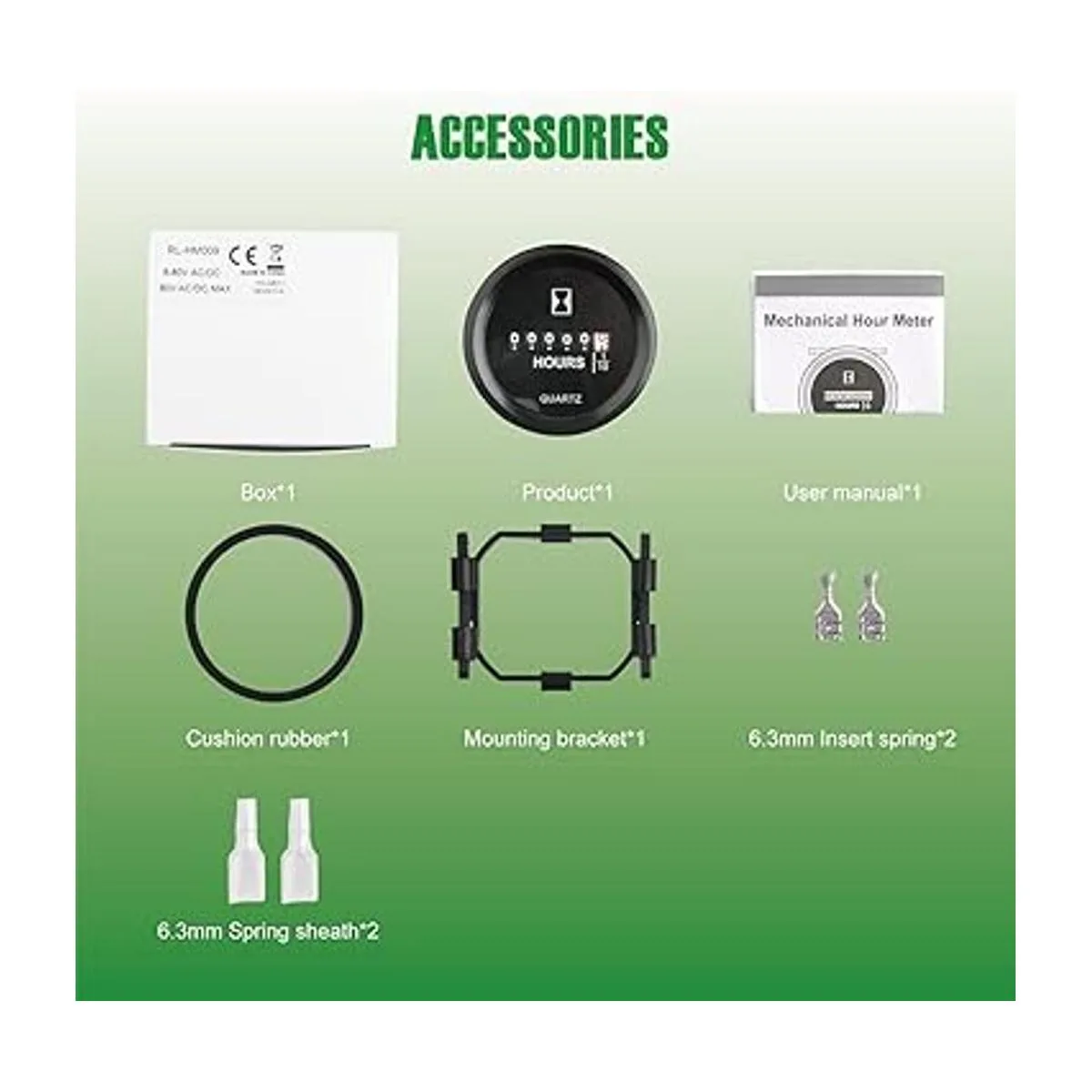 Yooreal Medidor de horas mecánico redondo, medidor de horas digital (DC 880 V), impermeable para tractor de jardín, velero, generador de cortacésped de giro cero