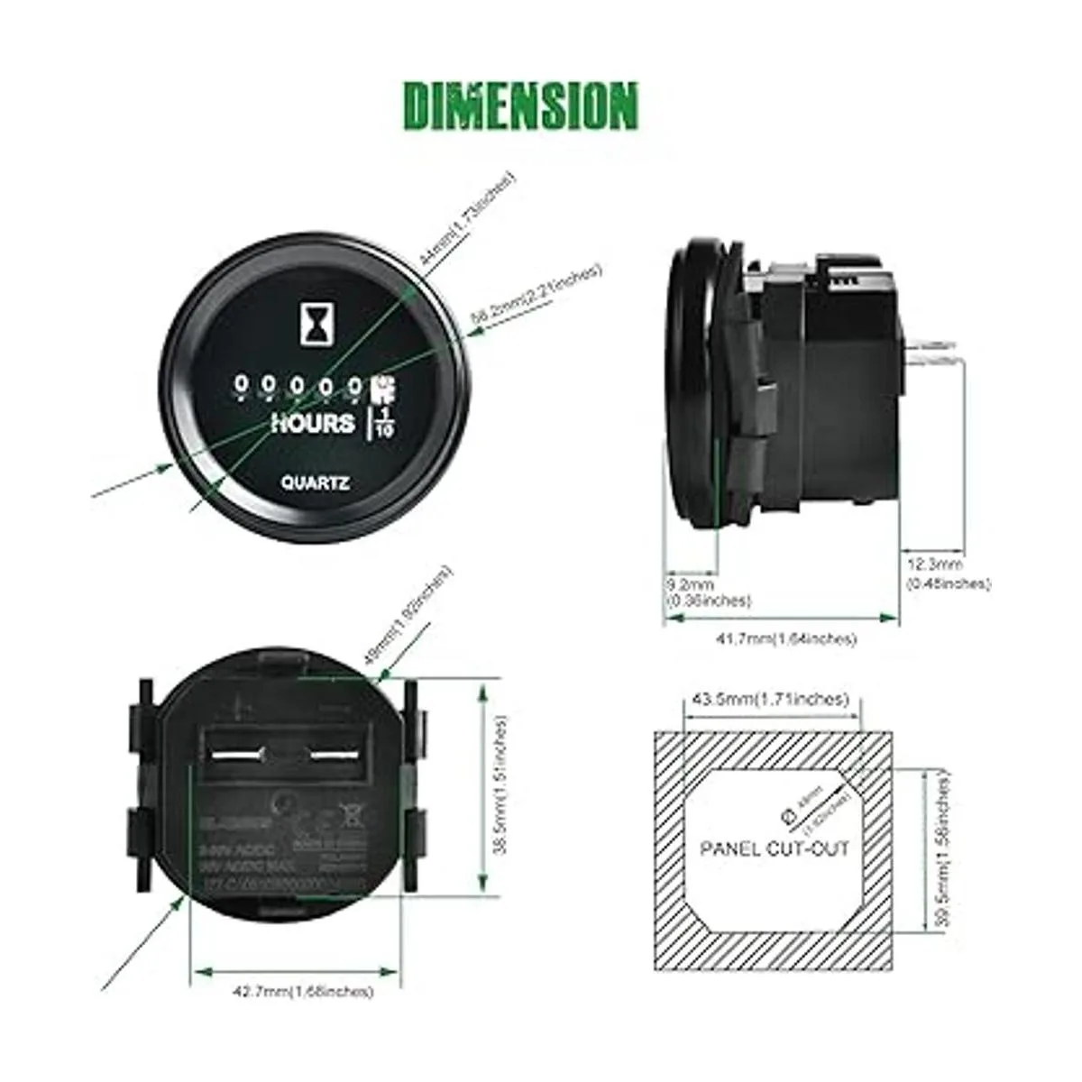 Yooreal Medidor de horas mecánico redondo, medidor de horas digital DC 880 V, impermeable para tractor de jardín, velero, generador de cortacésped de giro cero