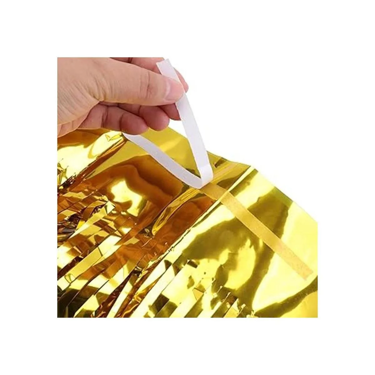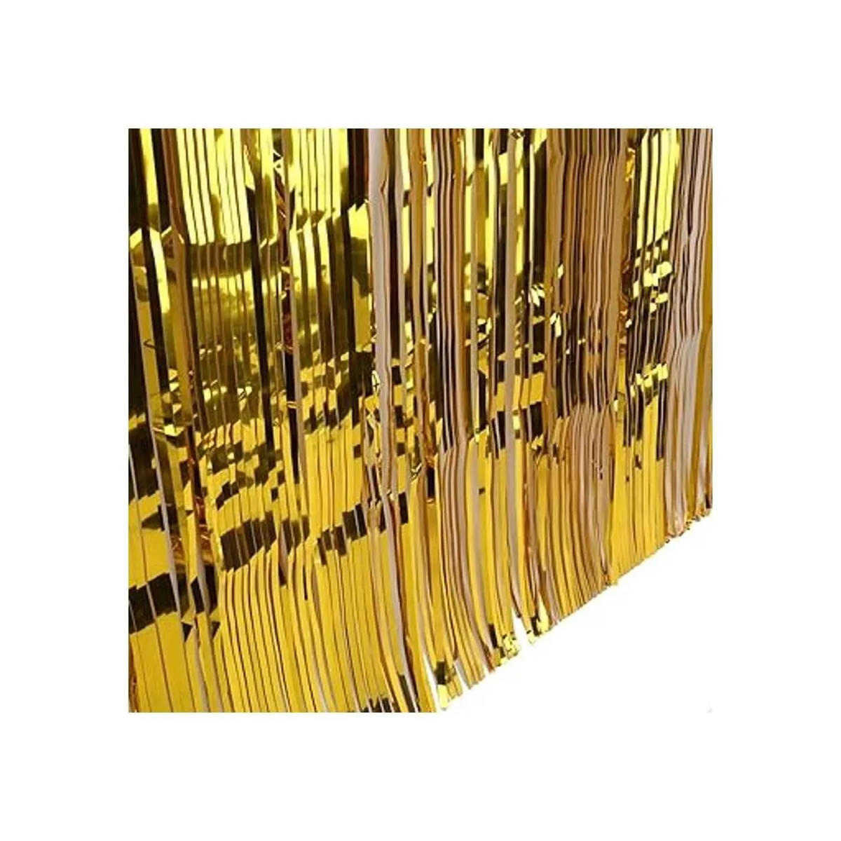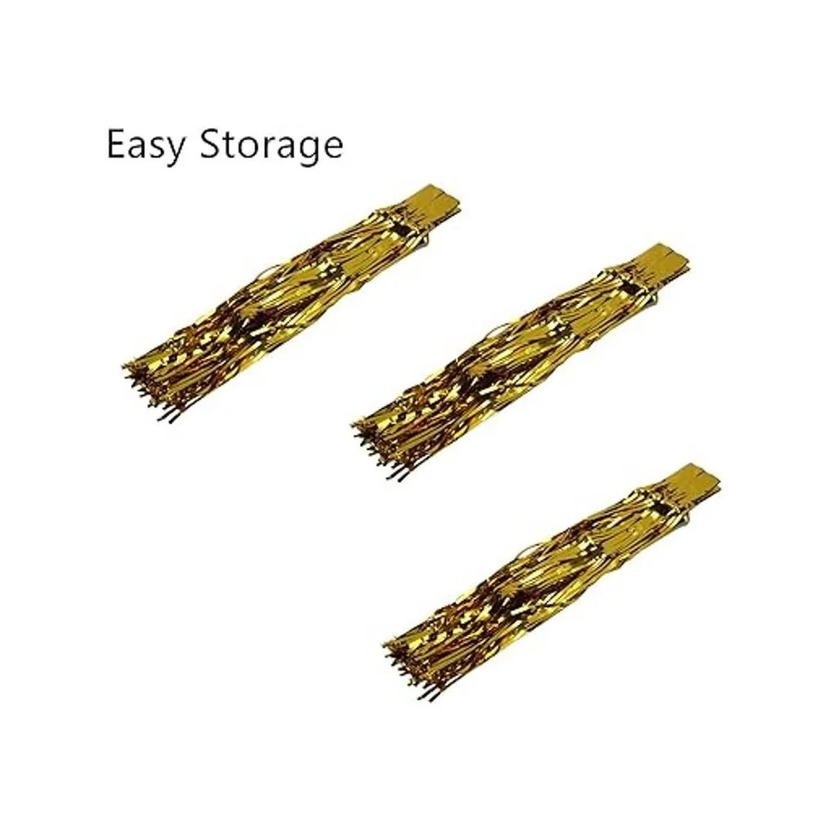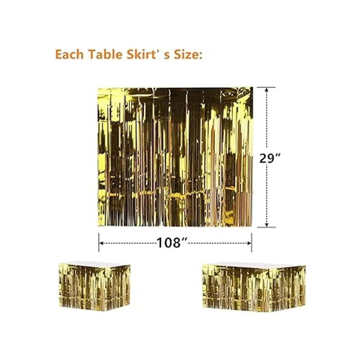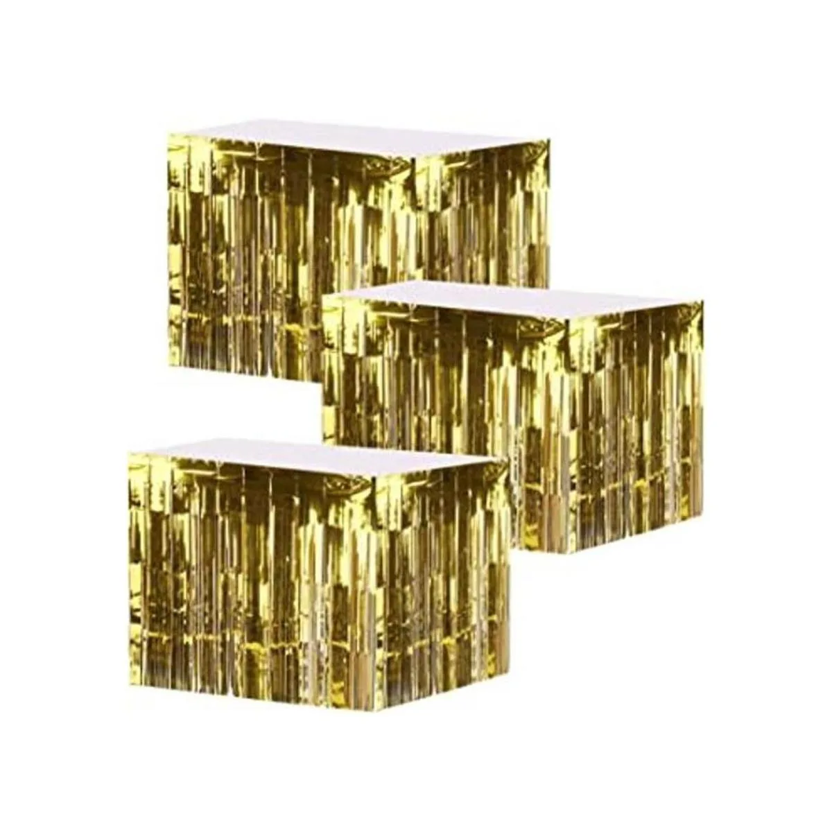 Yopay Paquete de 3 faldas de mesa con flecos de lámina metálica, pancarta dorada brillante para flotadores de desfile, Mardi Gras, despedida de soltera, boda, decoración de fiesta, 108 x 29 pulgadas, cada falda de mesa