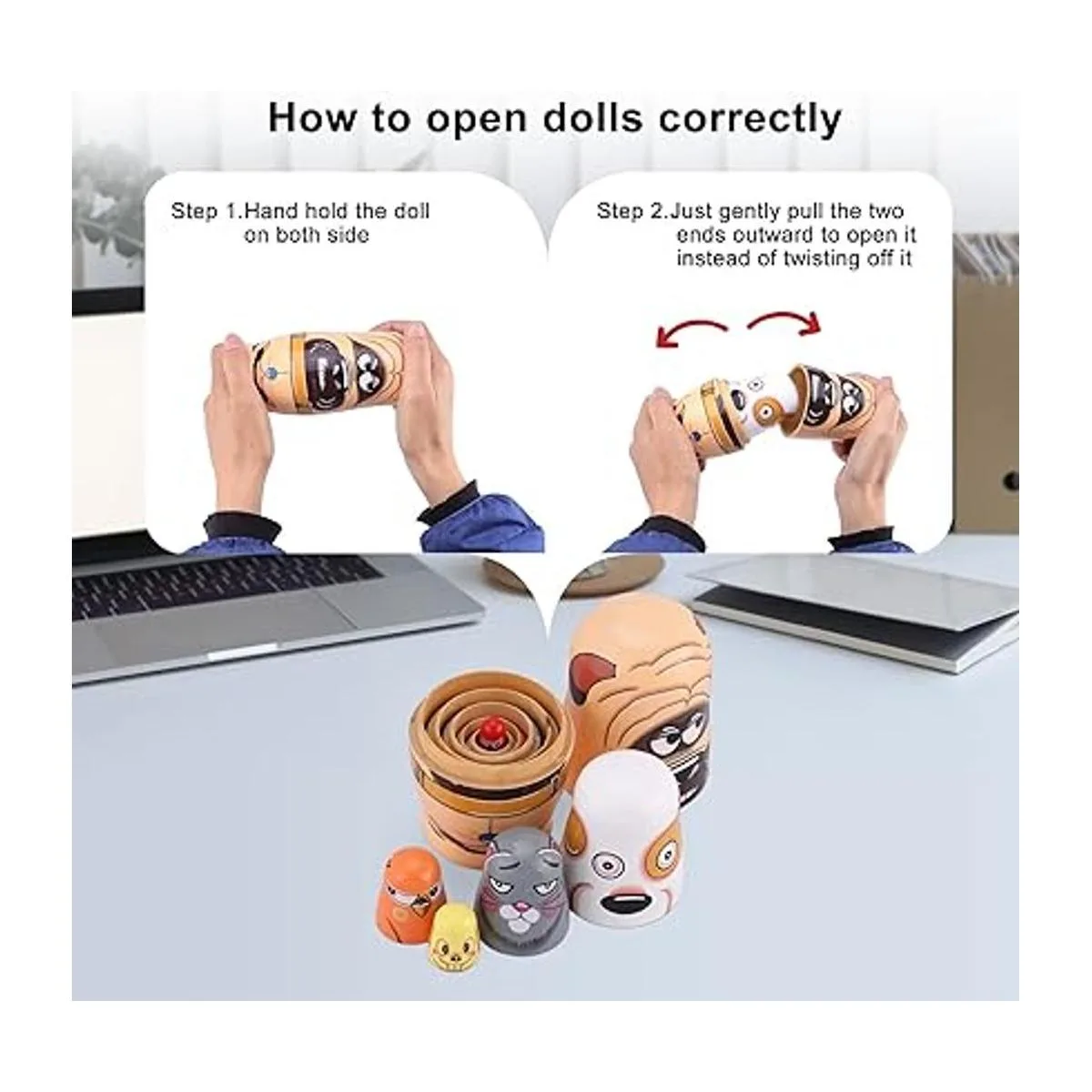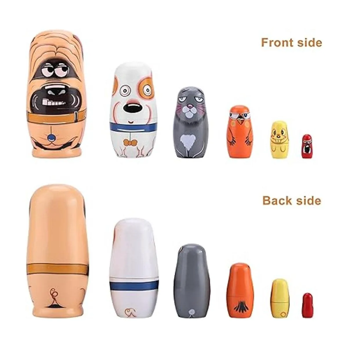 El paquete incluye: viene con 6 bonitas muñecas de anidación de animales en diferentes tamaños 2 lindos perros, gatos, pájaros, conejo y oso.