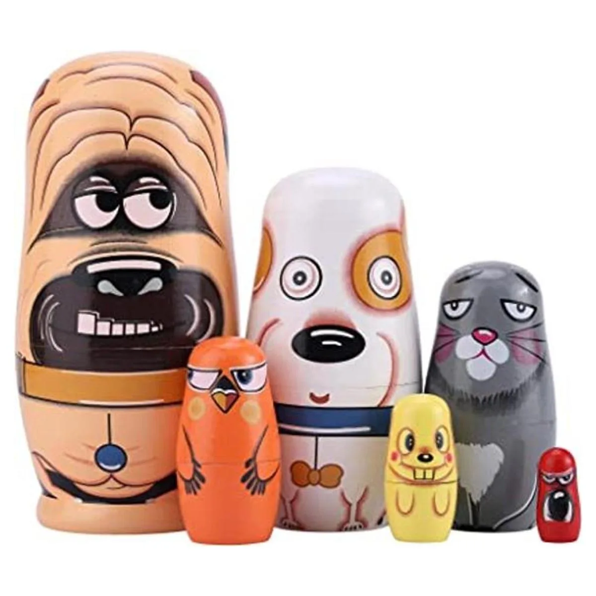 Yoption Juego de 6 muñecas rusas de anidación, hechas a mano de madera para perros, lindo juego de muñecas matryoshka para niños, regalo de Navidad y cumpleaños perros lindos