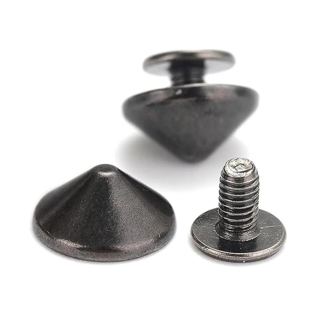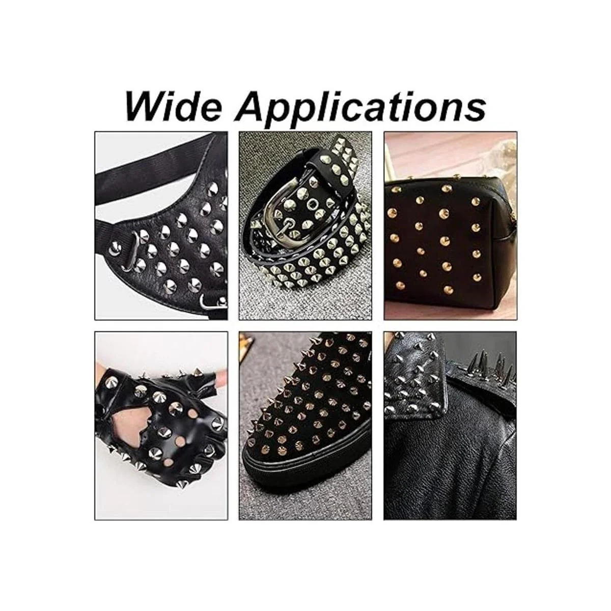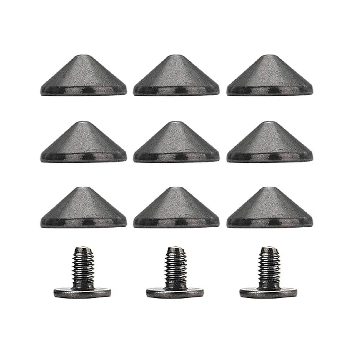 YORANYO 100 juegos de picos de cono y tachuelas de 0.185 in de altura de metal pistola de 316 pulgadas de bala de rosca trasera punk, tachuelas y picos para ropa, zapatos, cinturones de cuero, bolsas de accesorios con herramientas de instalación