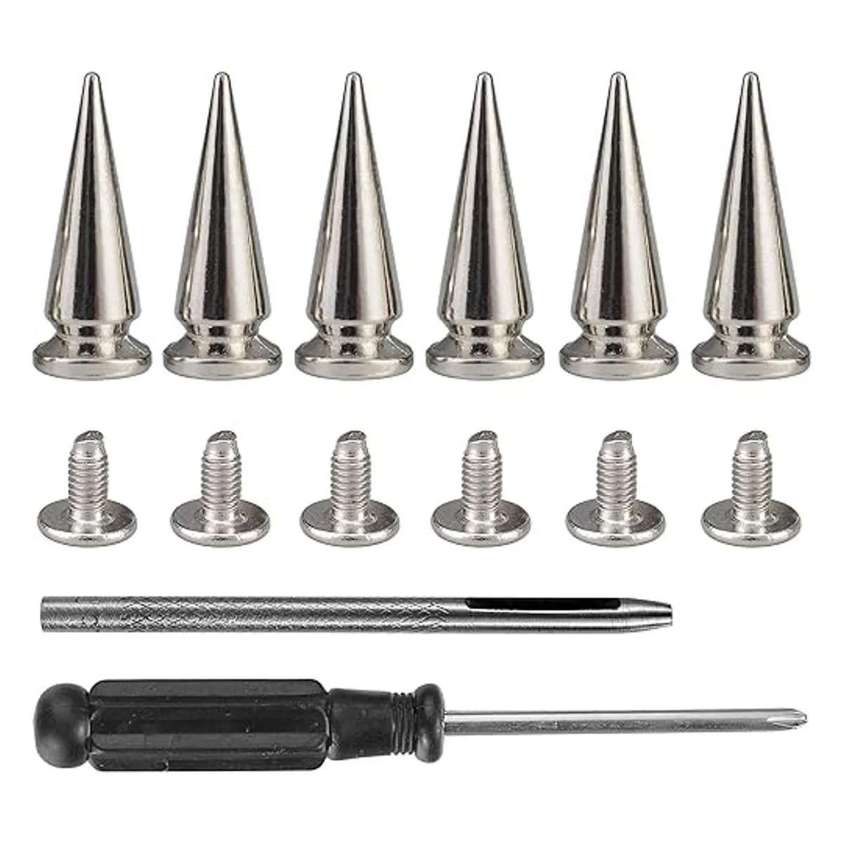 Tamaño y color Altura de la punta: 0.984 in, diámetro de la base de la punta: 0.374 in, altura del tornillo: 0.236 in. Color: plateado.