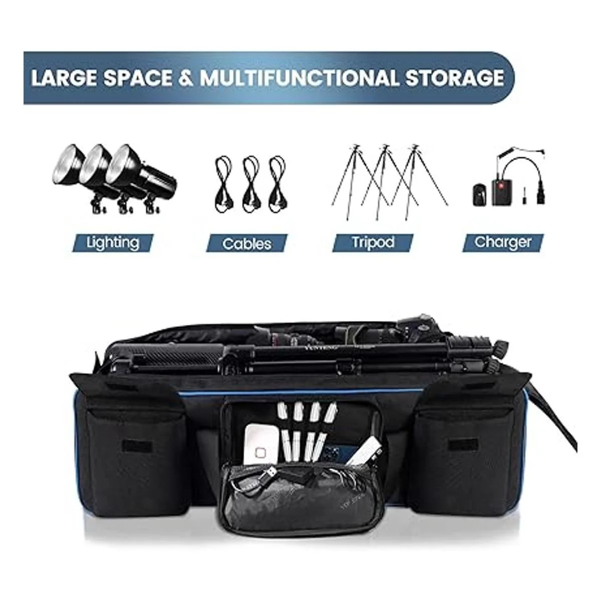Potente compatibilidad y almacenamiento multifuncional: la funda de transporte del trípode tiene un espacio lo suficientemente grande y es perfectamente adecuada para sostener soportes de luz, soporte de boom, paraguas, monoluces, luces LED, destellos y otros equipos fotográficos y accesorios. La funda de trípode YOREPEK viene con tres bolsillos laterales delanteros adicionales, el bolsillo principal también tiene un diseño único de bolsillo multialmacenamiento para cables, baterías y otros dispositivos.
