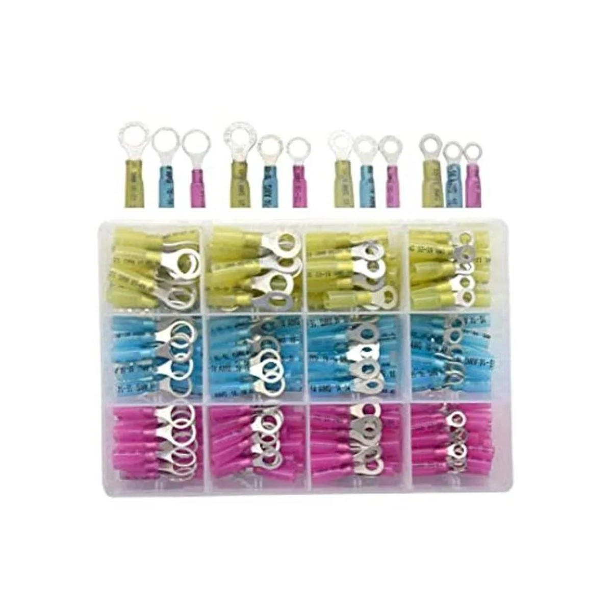 Yosawa 200 piezas de conectores de anillo termorretráctiles, terminales de engarce eléctricos aislados, kit de conector de cable 2210 AWG rojo, azul, amarillo RSR