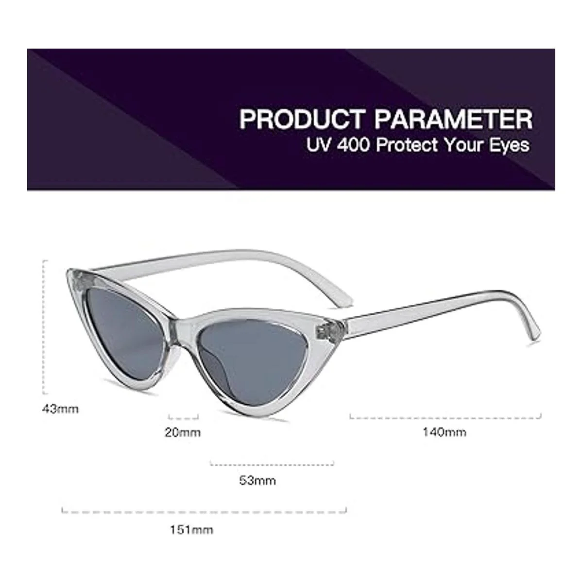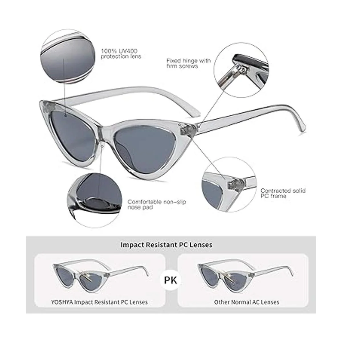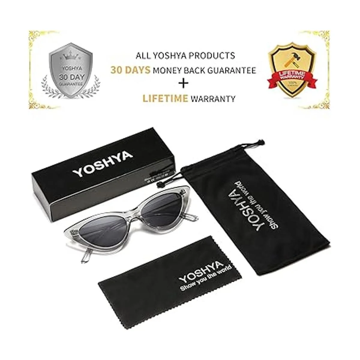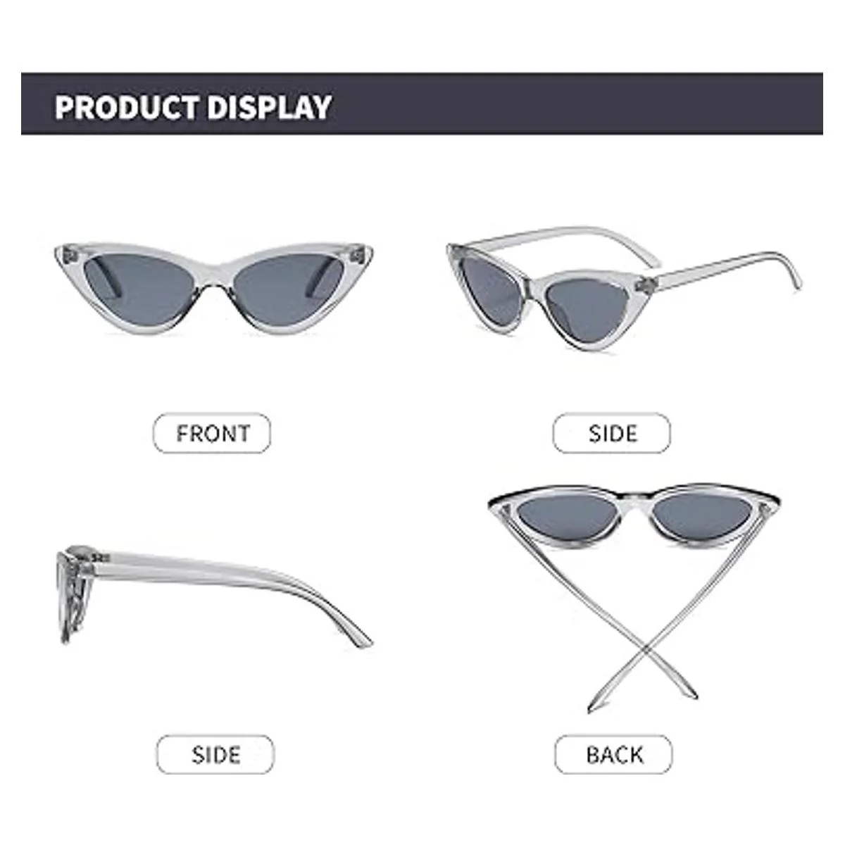 YOSHYA Gafas de sol retro vintage estrechas de ojo de gato para mujer, marco de plástico, Transparente Negro, Gratis