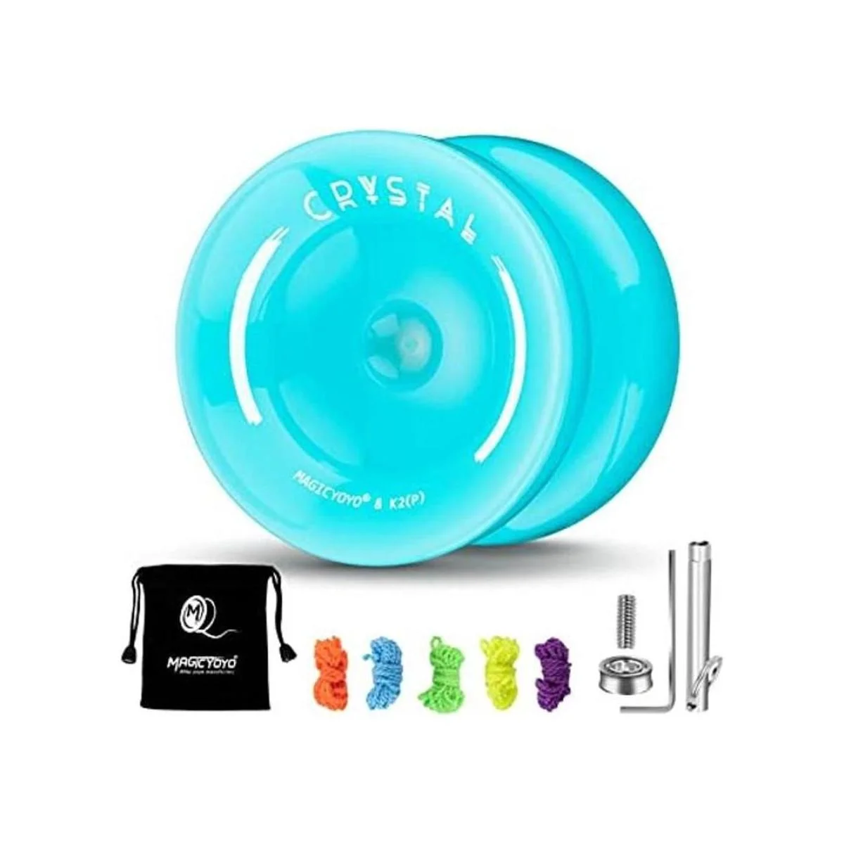 YOSTAR Yoyo K2 Plus Crystal Yoyo para niños, Yoyo sensible para principiantes, doble propósito, rodamiento insensible de repuesto para intermedios avanzados, con 5 cuerdas de yoyo, bolsa, removedor de rodamientos (azul cielo)