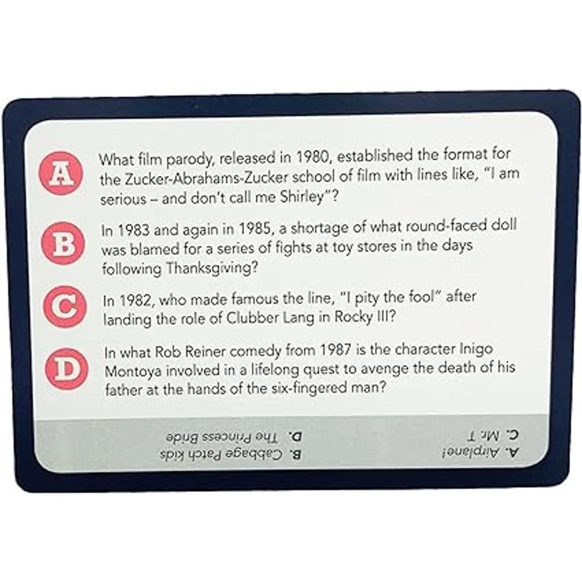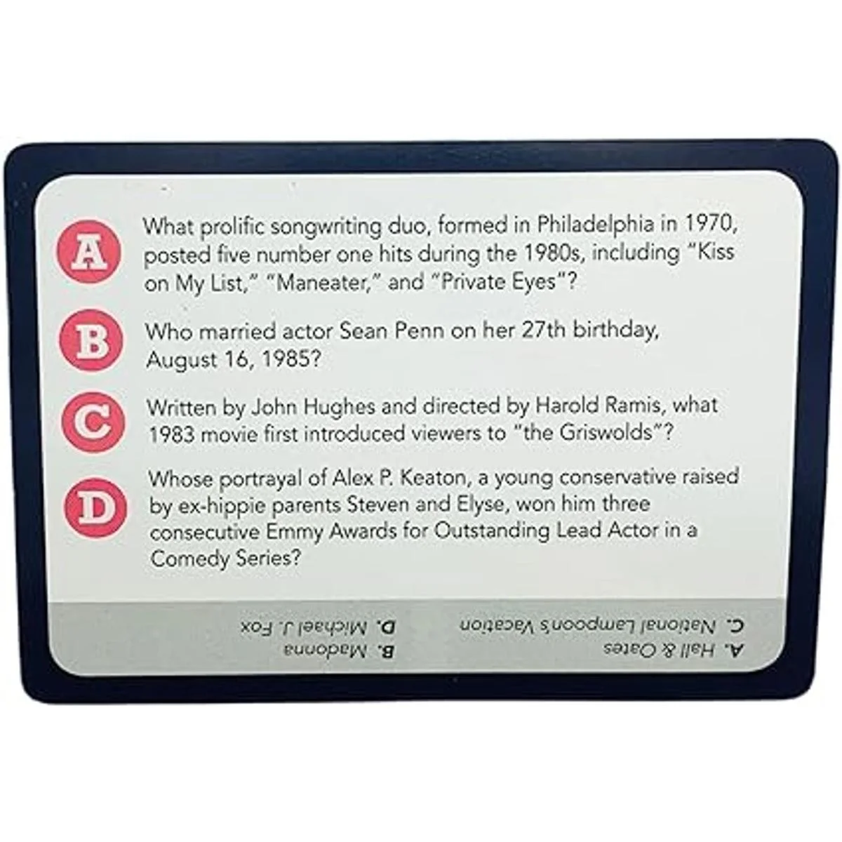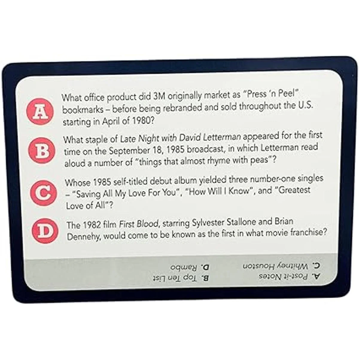 125 tarjetas de trivia con 500 preguntas sobre los años 80