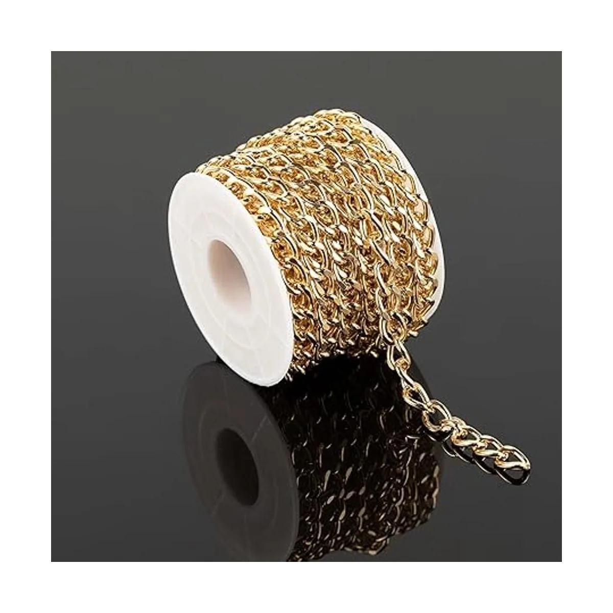 Fácil de usar y almacenar: la cadena giratoria de aluminio chapado en oro para hacer joyas está enrollada en un carrete para evitar nudos y fácil de usar, simplemente enróllala de nuevo al carrete cuando no esté en uso, fácil y conveniente. La longitud te permite hacer muchos artículos.