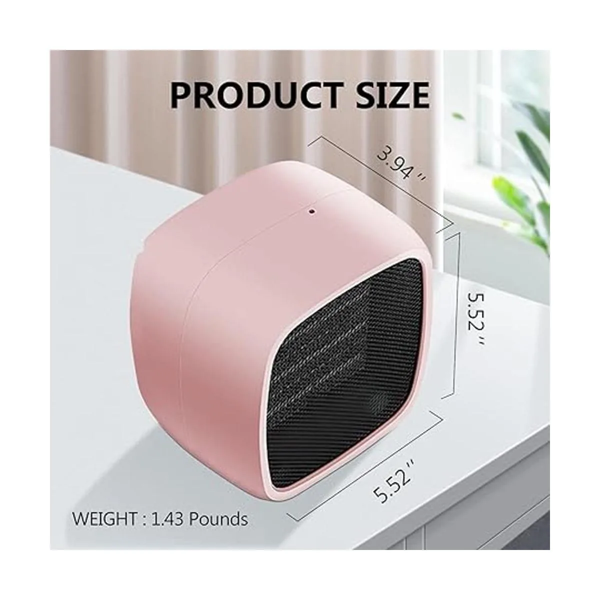 Tamaño pequeño: Dimensiones: 5.52 pulgadas de largo x 5.52 pulgadas de ancho x 3.94 pulgadas de alto, el mini calentador de peso ligero de 1.43 libras es muy fácil de llevar. Es la opción ideal para uso en interiores como oficina, habitación, escritorio, hogar, dormitorio.