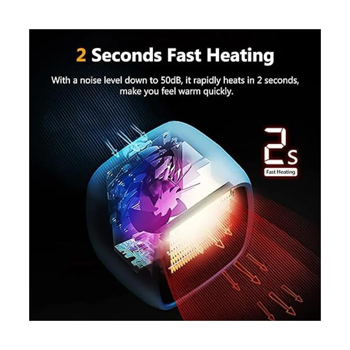 Calentamiento silencioso y rápido: nuestro calentador de cerámica PTC tiene un motor CC y un ventilador de 7 aspas, lo que lo hace extremadamente silencioso, funciona con un nivel de ruido de hasta 50 dB. Y se calienta rápidamente en 2 segundos, te hace sentir caliente rápidamente.