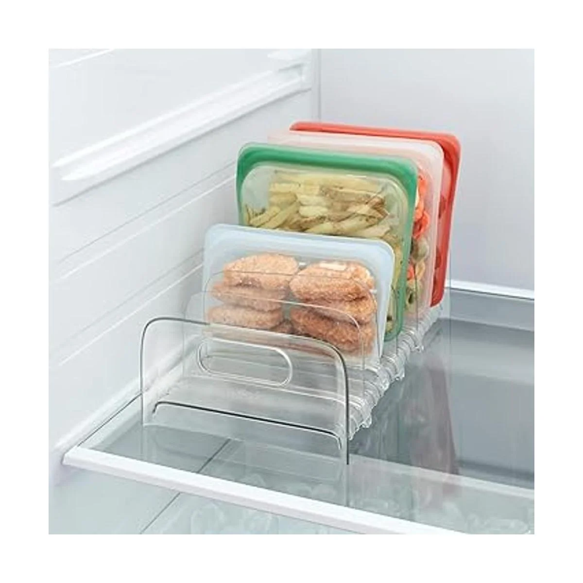 Cierre a presión: los separadores se ajustan firmemente en su lugar para que los artículos congelados se mantengan en posición vertical en una fila ordenada.