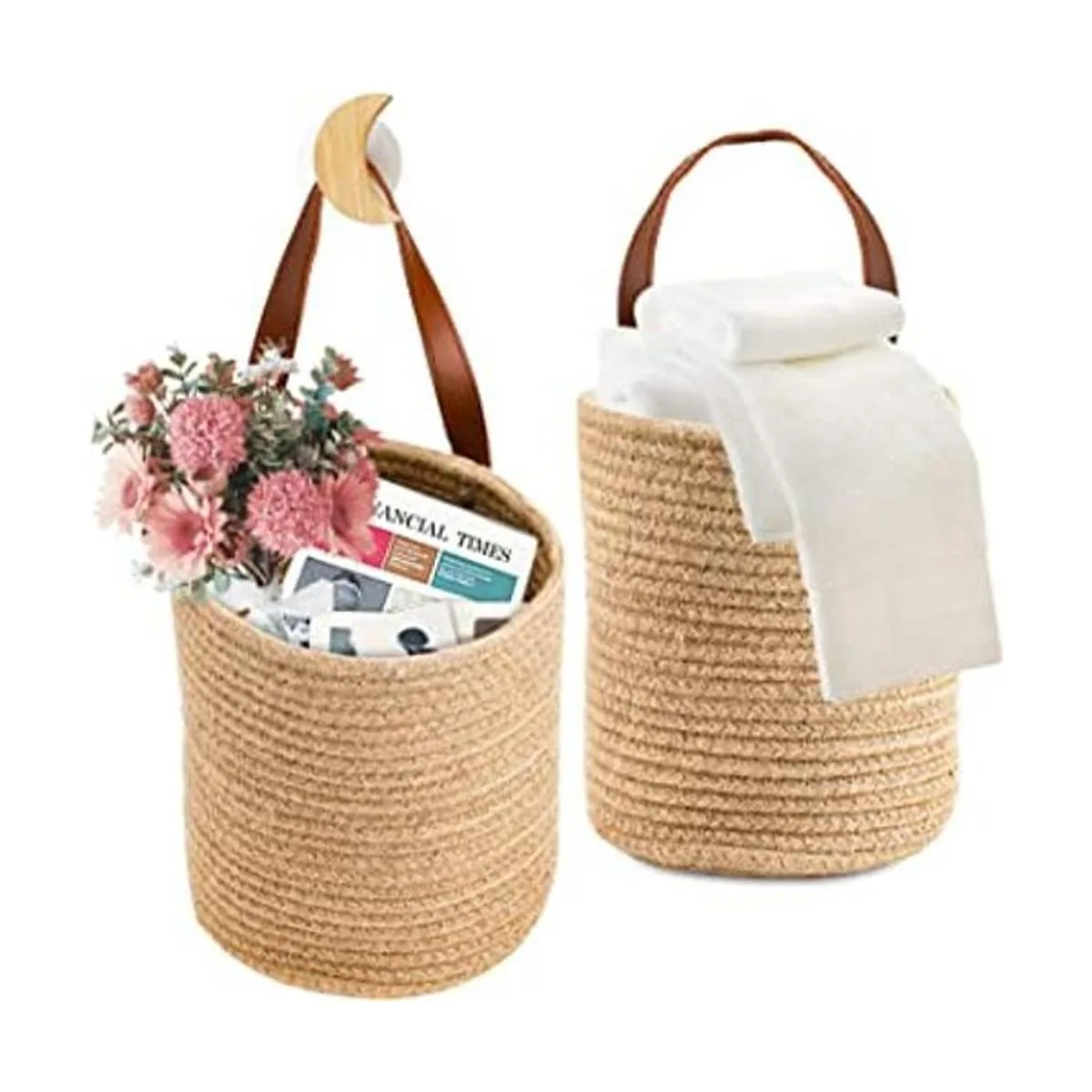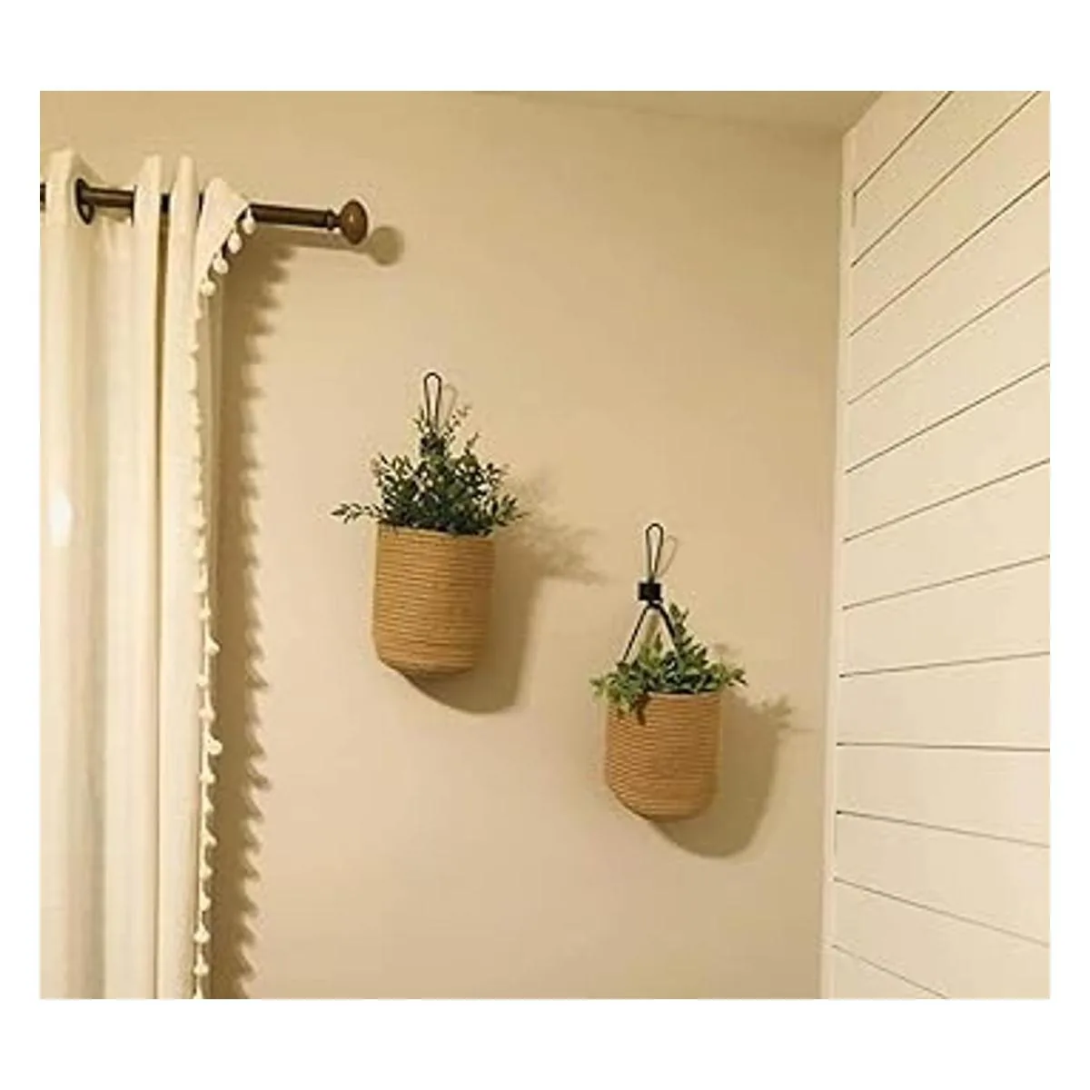 YOUEON Juego de 2 cestas para colgar en la pared de 8.5 x 6.5 pulgadas, cestas de almacenamiento colgantes de yute, macetas tejidas para colgar para plantas de flores, toallas, juguetes y accesorios