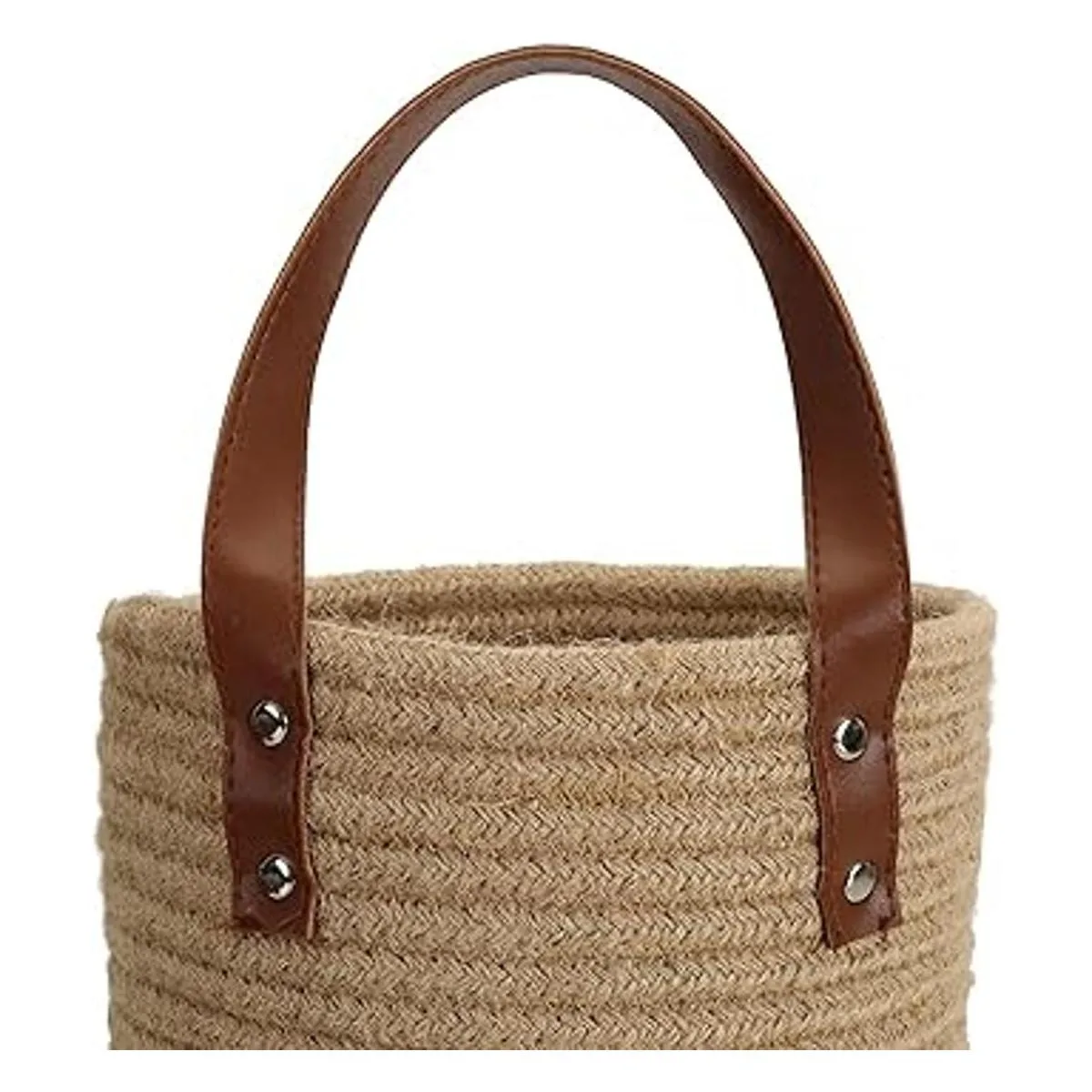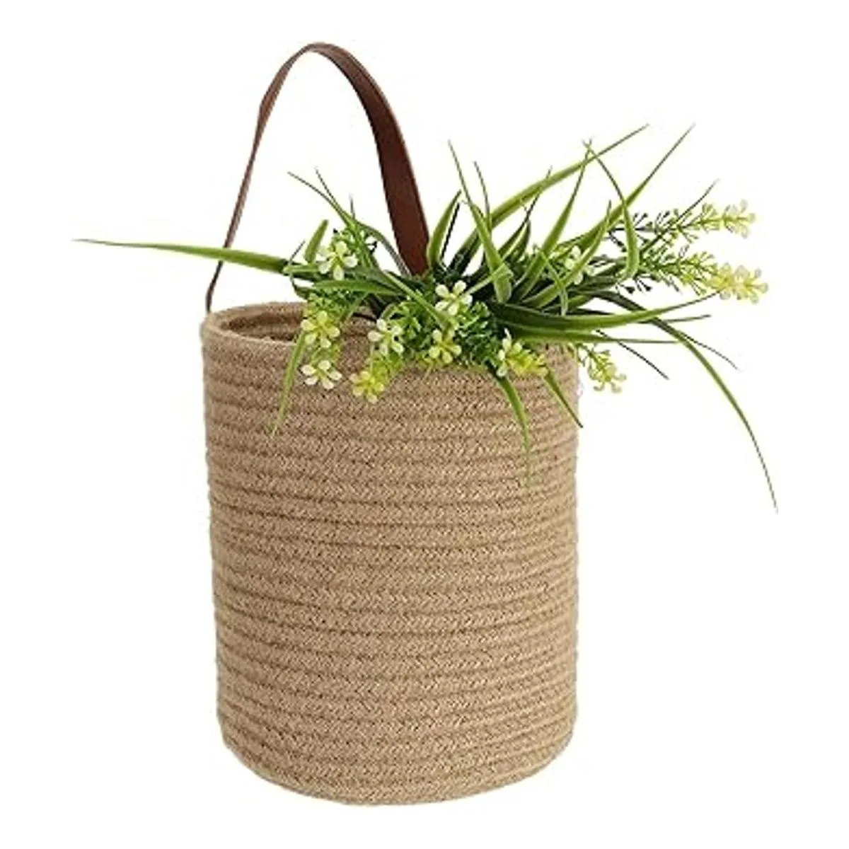 YOUEON El juego de 2 cestas colgantes de yute mide 8.5 x 6.5 pulgadas, portátil y ligero. Fácil de colgar en un estante decorativo de pared, cocina o baño, patio interior y jardín.