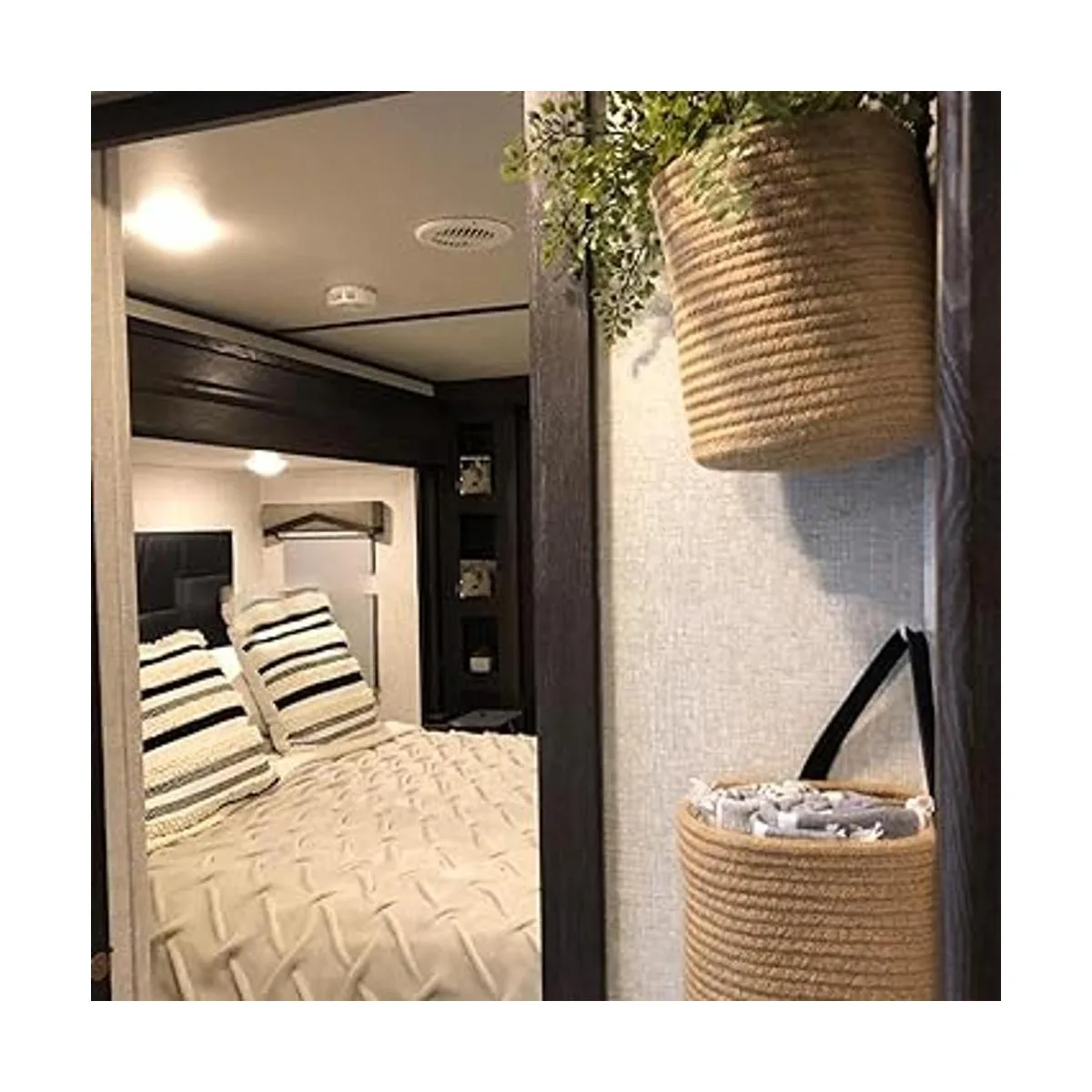 Usos versátiles: la cesta colgante de pared es ideal para guardar varios artículos como plantas, toallas, juguetes, papel higiénico, cosméticos, llaves y mucho más.
