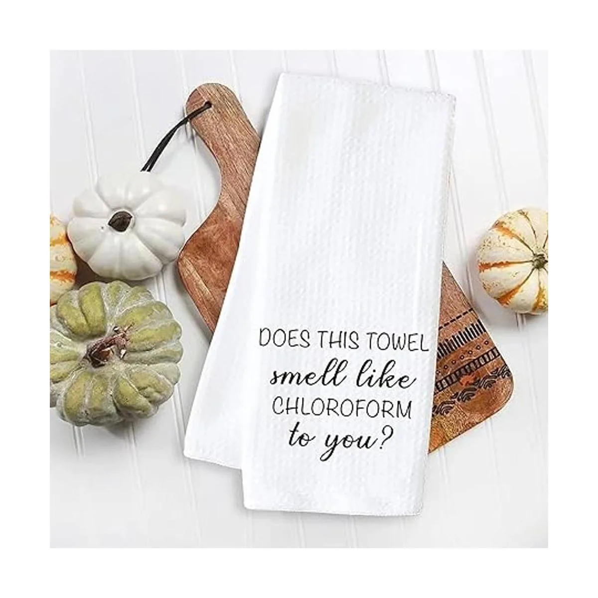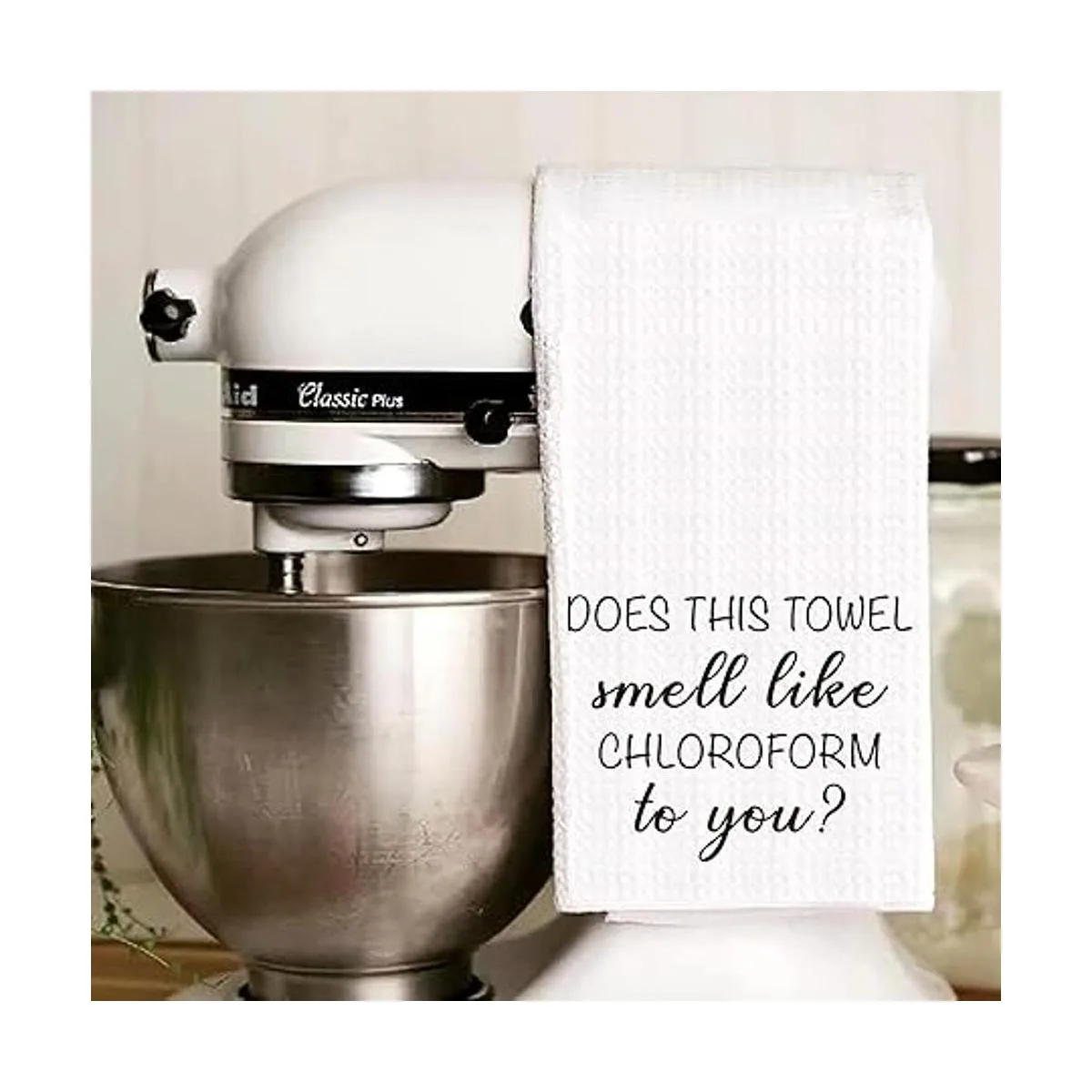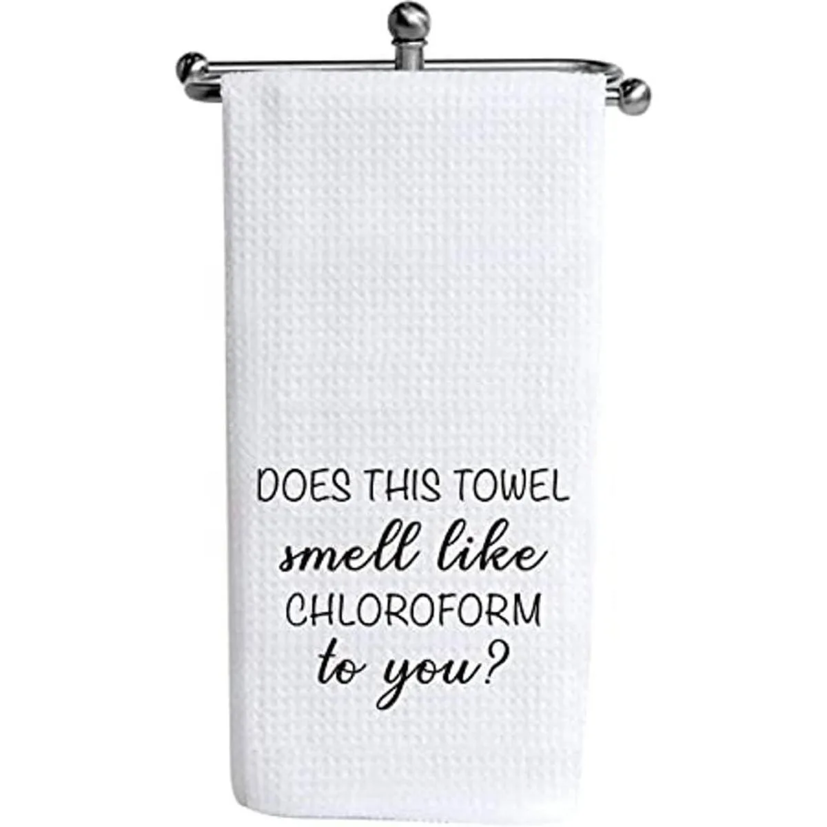 YouFangworkshop Esta toalla huele a cloroformo para ti Divertidas toallas de cocina, toalla de saco de harina, toalla de mano divertida para inauguración de la casa del baño
