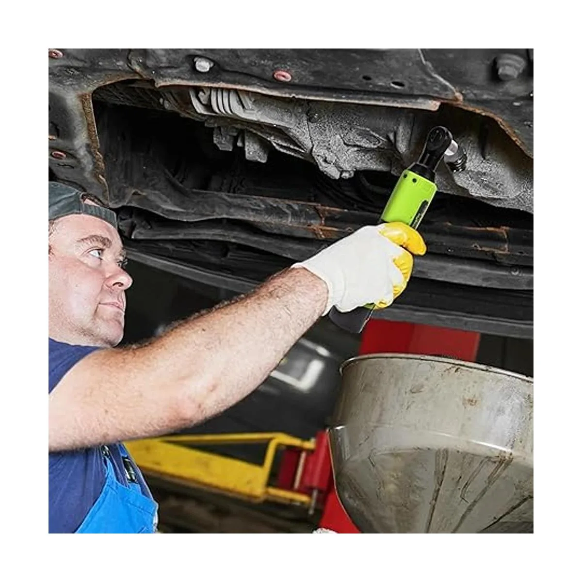 Potente y eficiente : los trinquetes inalámbricos te permiten trabajar en tus vehículos o en tu hogar sin esforzarte por operar un trinquete manual y sin el riesgo de tropezar con la manguera de aire de un trinquete de aire. El trinquete inalámbrico Yougfin tiene una alta velocidad máxima de 400 rpm y una salida de par superior de 40 pieslibras. Puedes controlar la potencia y la velocidad del trinquete de 3/8 pulgadas con el gatillo de velocidad variable