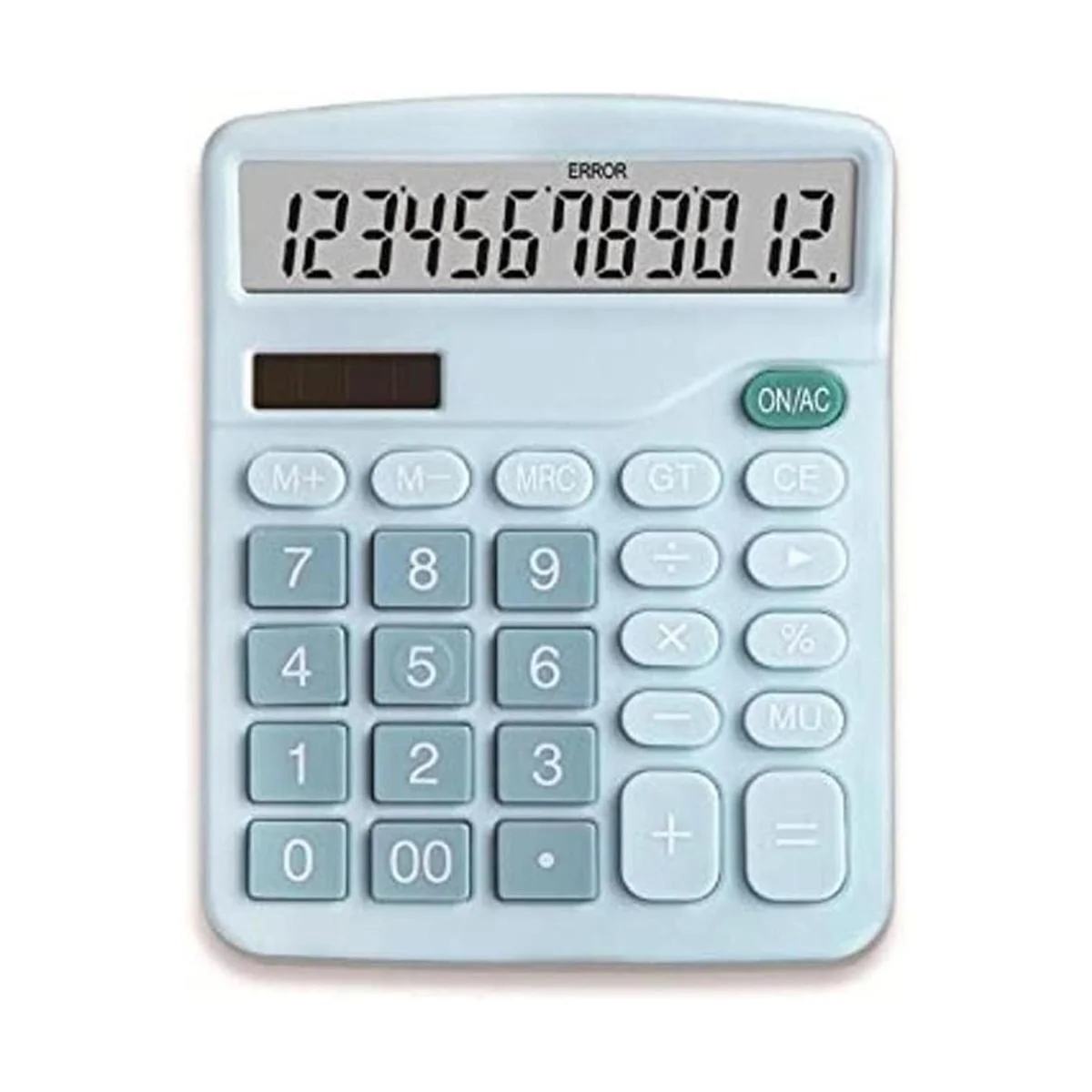 YOUHO Calculadora, batería solar de 12 bits, función estándar, calculadora electrónica con pantalla LCD grande, calculadora de oficina, color negro una batería KK837B, 1 paquete, azul
