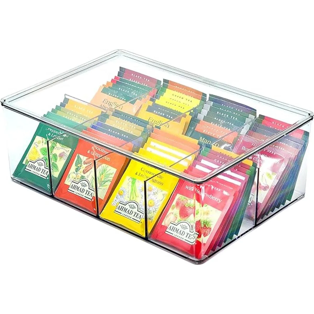 Youngever Organizador grande de plástico para té con tapas, contenedor reutilizable de almacenamiento de alimentos dividido en 8 compartimentos, contenedor de almacenamiento de bolsas de té 11 x 7.5 x 4 pulgadas