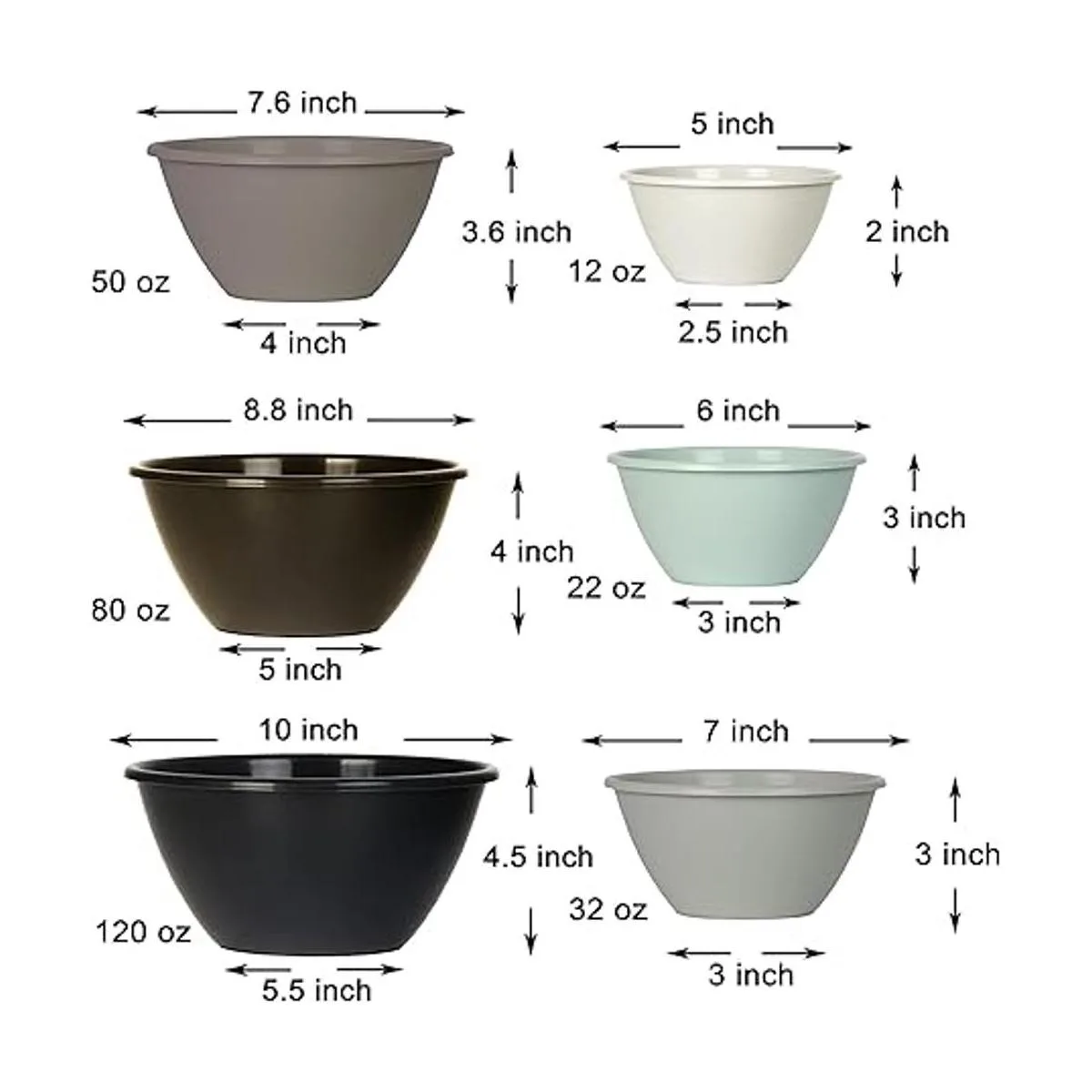 Youngever Paquete de 6 cuencos grandes de plástico para mezclar y servir, juego de cuencos de plástico anidables, 120 onzas, 80 onzas, 50 onzas, 32 onzas, 22 onzas, 12 onzas color urbano