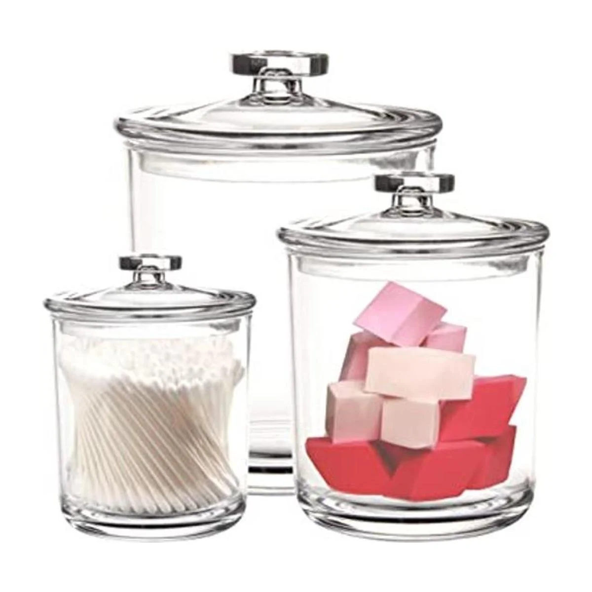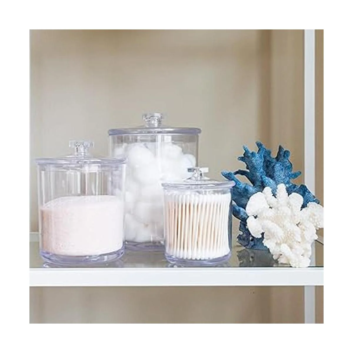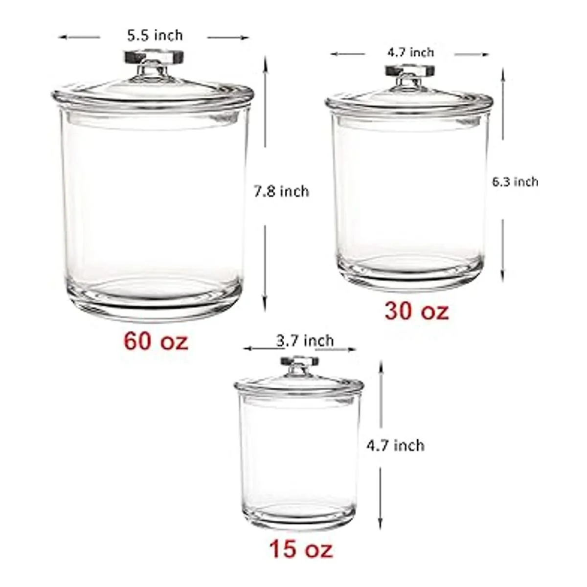 Tamaño: 5.7 fl oz. Tamaño del tarro: 5.5 in de diámetro, 7.5 in de alto. Tamaño del tarro: diámetro: 4.7 in, altura: 6.3 in. Tamaño del tarro: diámetro: 3.7 in, altura: 4.7 in. Tamaño perfecto para Qtips, bolas de algodón, sales de baño, esponjas de maquillaje, bandas de goma, etc.