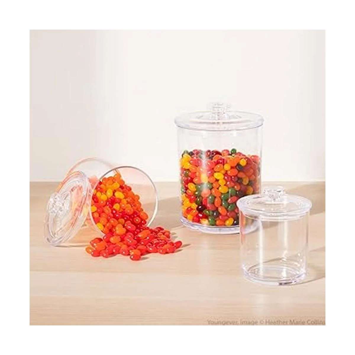 Tarros de Apothecary Paquete de 3 tarros de plástico transparente en 3 tamaños. 1 paquete de 60 onzas, 1 paquete de 30 onzas y 1 paquete de 15 onzas