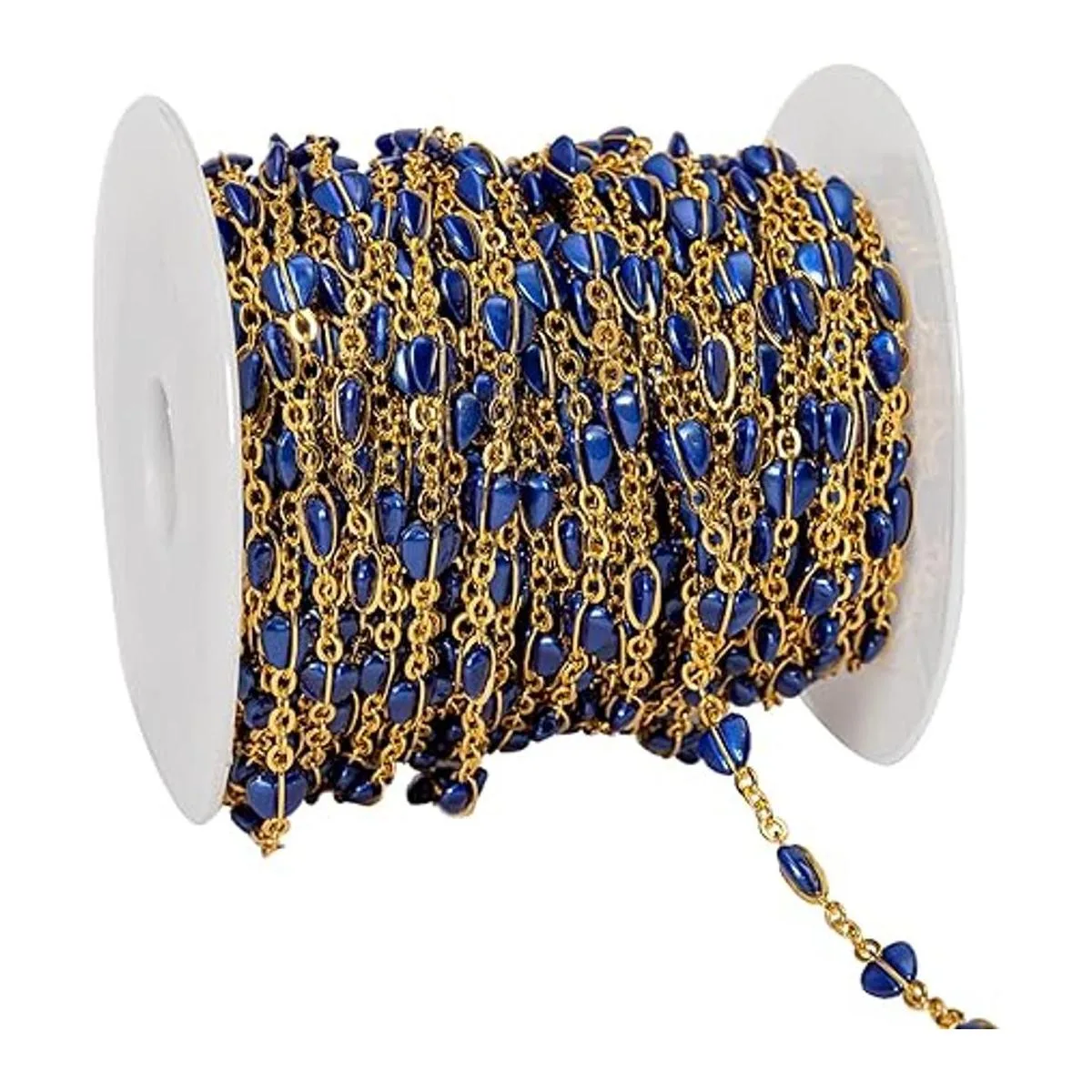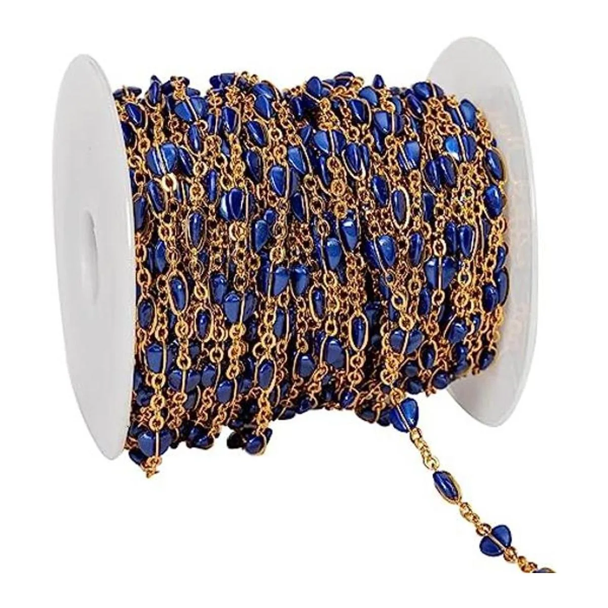 YoungJewl 1 yarda de acrílico hecho a mano con cuentas de corazón de melocotón perforado con cadena de latón para hacer joyas y manualidades de bricolaje zafiro de corazón