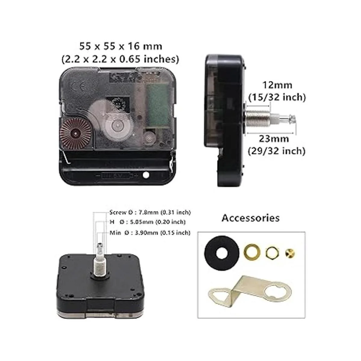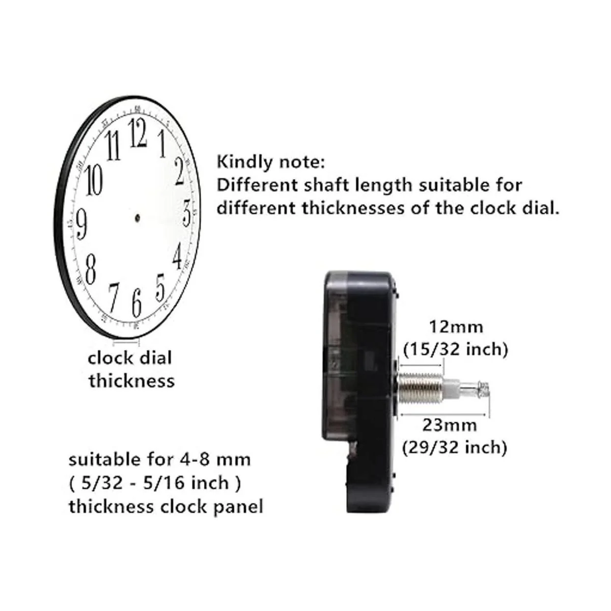 Tamaño del movimiento: la longitud total del eje es de 0.906 in, la longitud de la rosca es de 0.472 in, adecuada para paneles de reloj de 4 a 0.315 in de grosor.