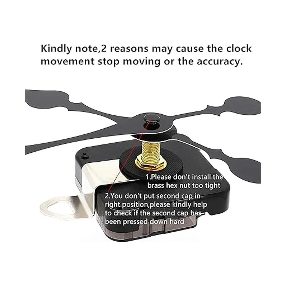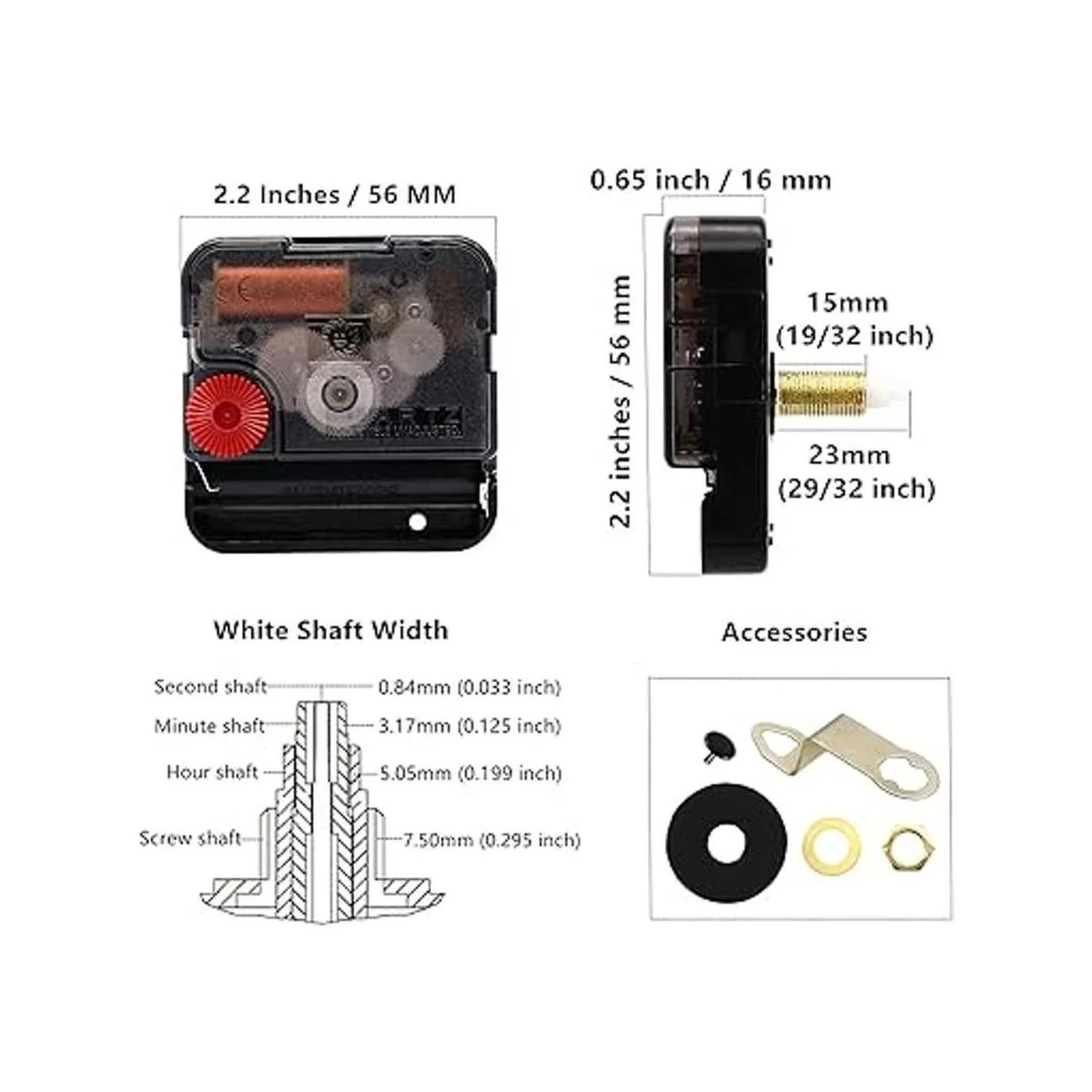 Tamaño del movimiento: la longitud total del eje es de 0.906 in, la longitud de la rosca es de 0.591 in 19/32 pulgadas, apto para panel de reloj de 9 a 0.512 in 23/64 1/2 pulgadas de grosor.