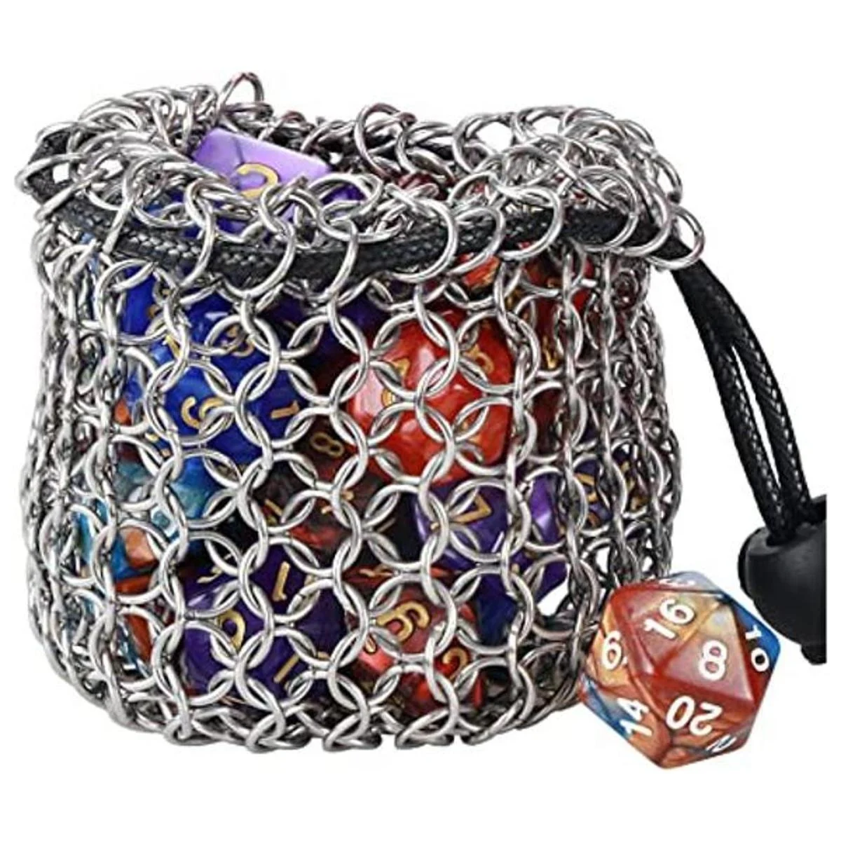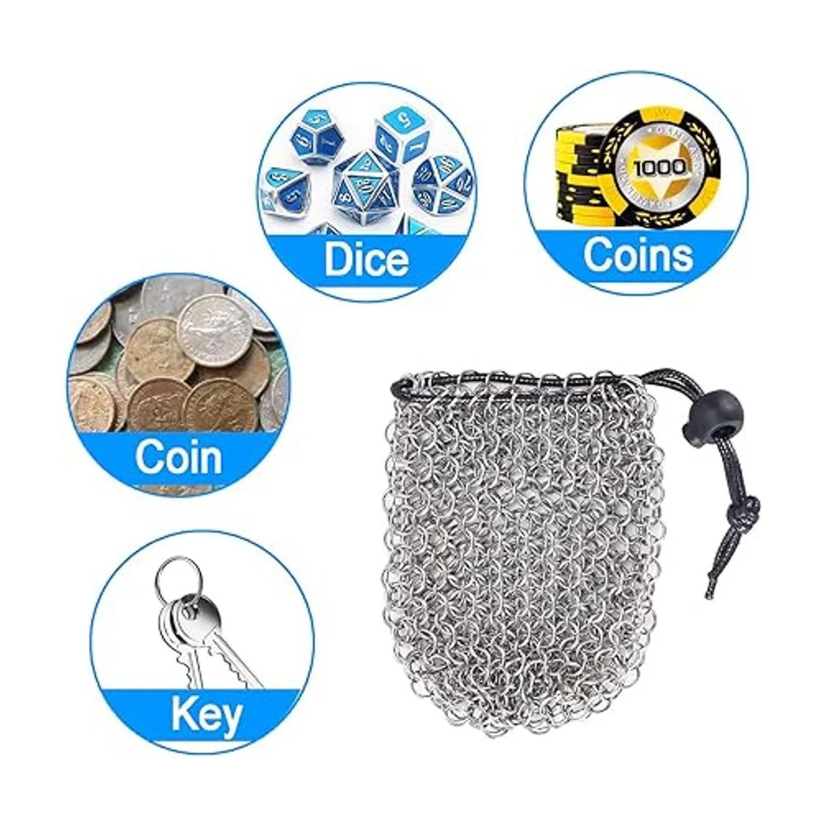 Esta bolsa de metal para dados está hecha de acero inoxidable 304. Perfecto para guardar fice listo para tu próxima batalla de juego. dados no incluidos