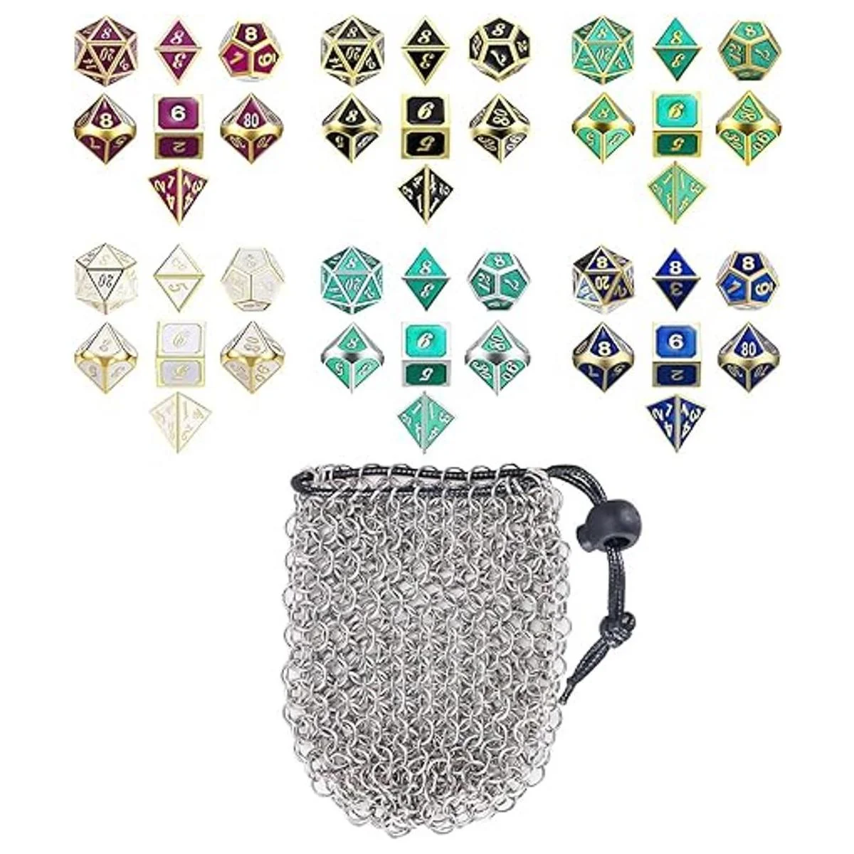 YOUSHARES Bolsa de dados de juego con cordón Bolsa de dados DND de acero inoxidable para juego de dados poliédricos de metal DD, moneda