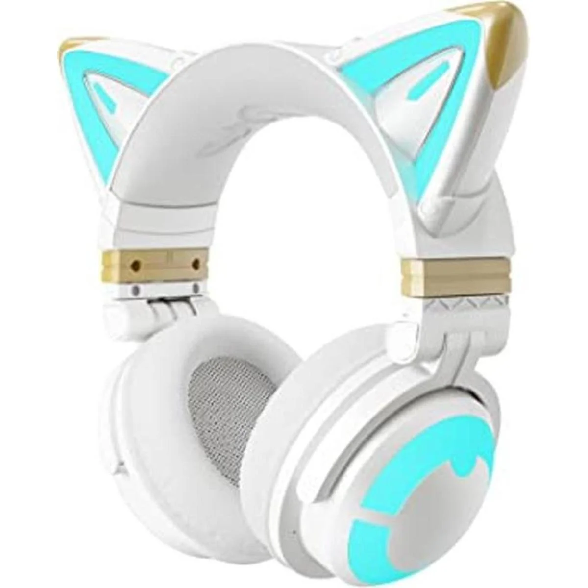 YOWU Auriculares RGB Cat Ear 3G inalámbricos 5.0 plegables para juegos con sonido envolvente 7.1, micrófono integrado e iluminación y efecto personalizables a través de la aplicación, cable de audio de carga tipo C, color blanco