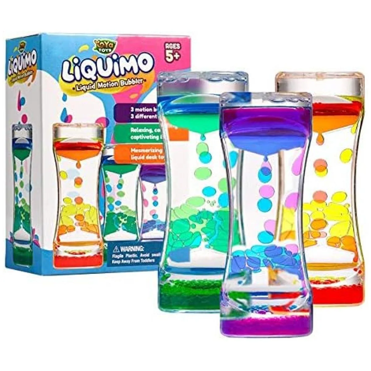 Yoya Toys Liquimo Burbujador de movimiento líquido para niños y adultos paquete de 3 Burbujero líquido de reloj de arena Temporizador para juego sensorial, juguete para ansiedad Manejo del estrés Decoración de escritorio fresca