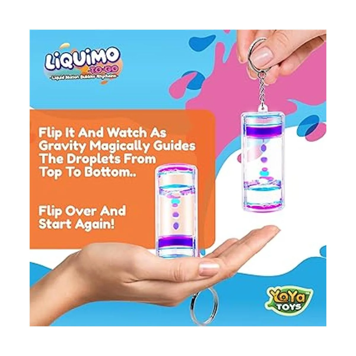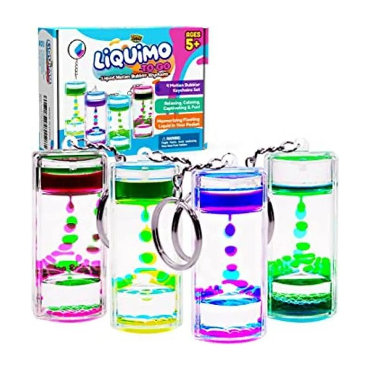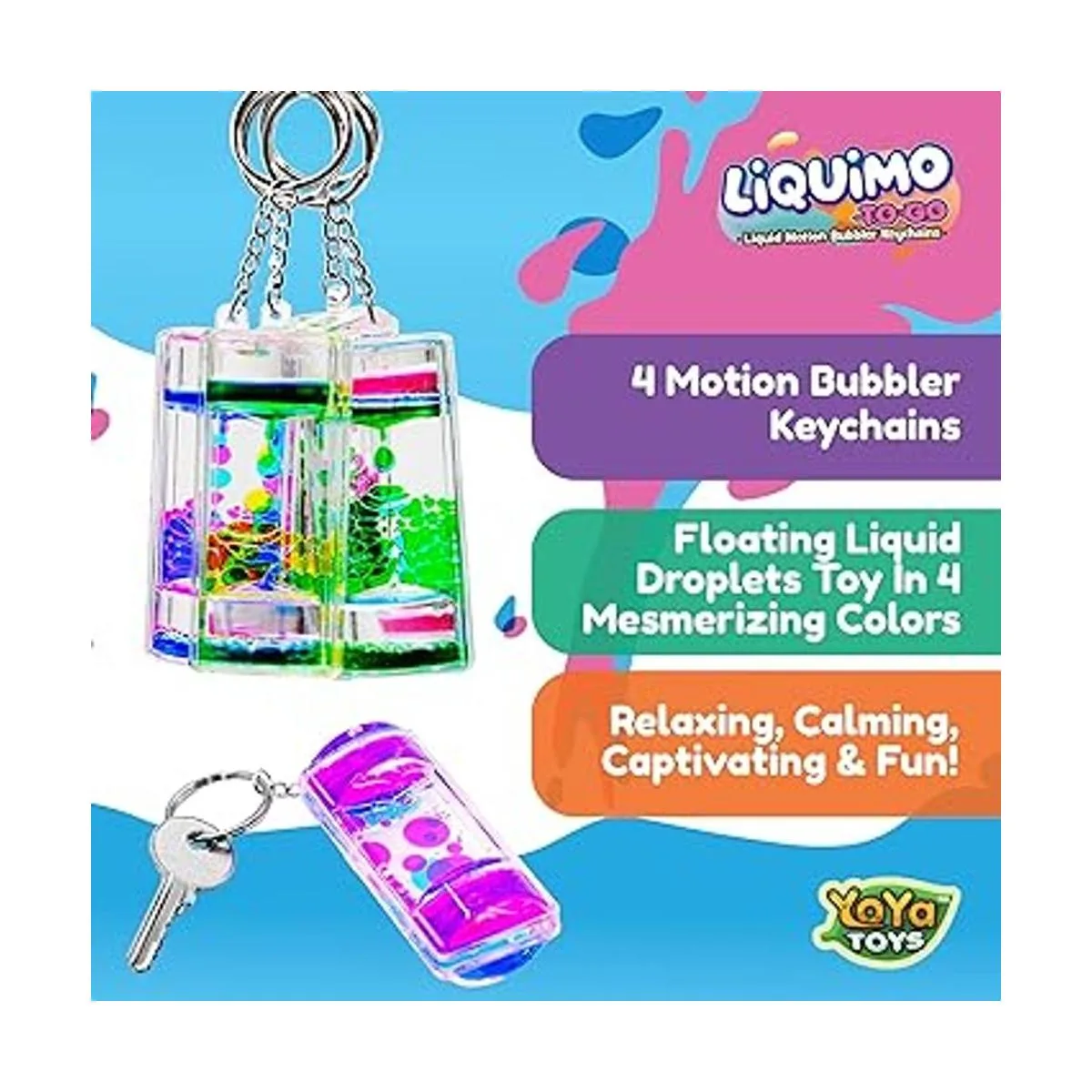 YoYa Toys Liquimo to Go Juguetes sensoriales para niños, juego de 4 llaveros con burbujas de movimiento líquido, temporizador líquido para juego sensorial, juguete calmante para niños, llavero para ansiedad, regalos para aliviar el estrés y recuerdos de fiesta