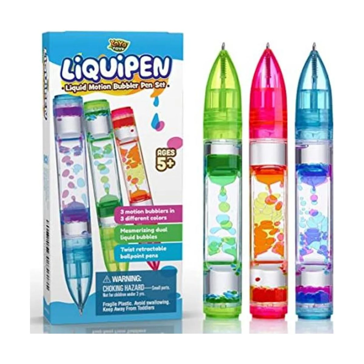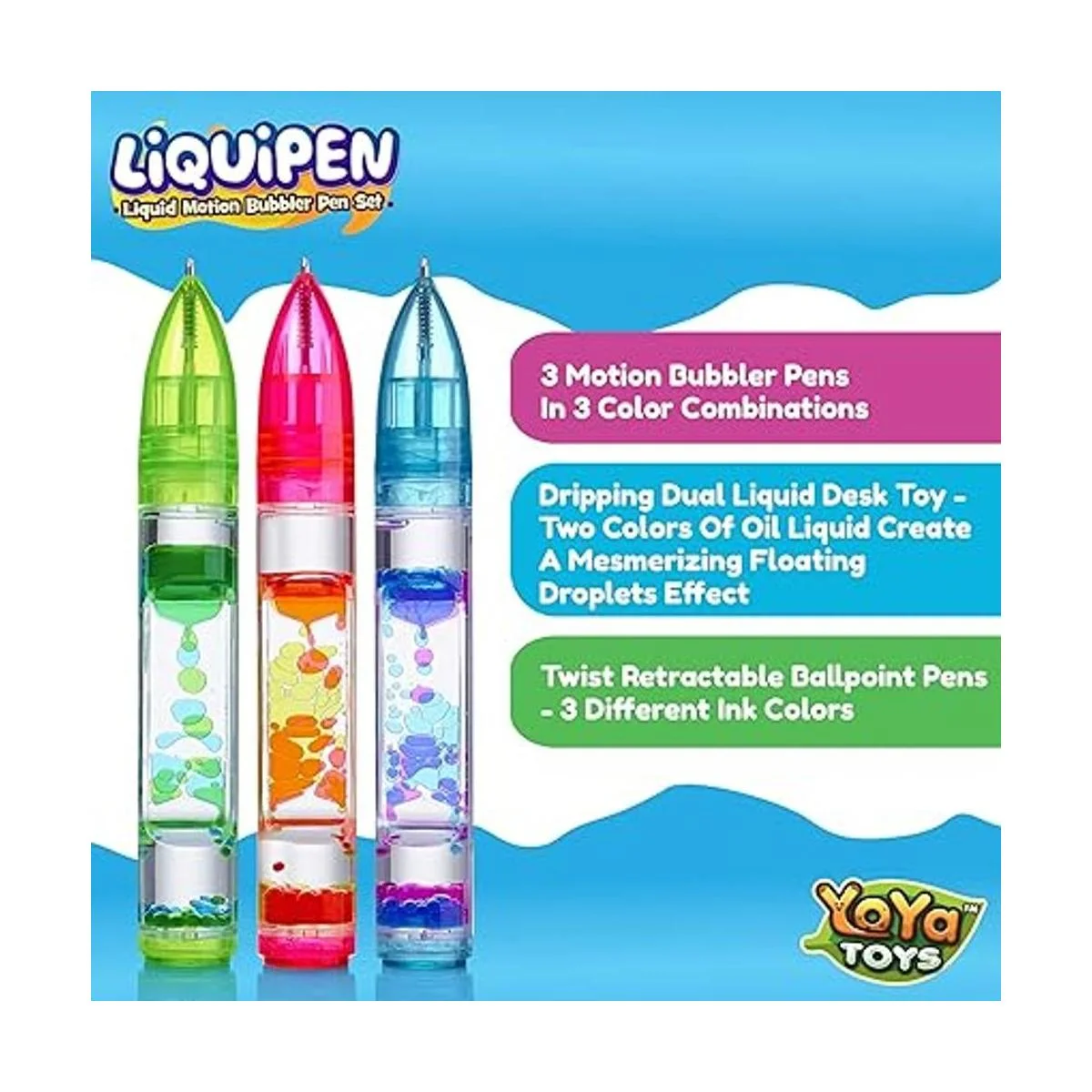 YoYa Toys Liquipen Bolígrafos sensoriales de burbujas de movimiento líquido paquete de 3 Escribe como un bolígrafo regular Rotuladores coloridos líquidos ideales para aliviar el estrés y la ansiedad Juguetes geniales para niños y adultos