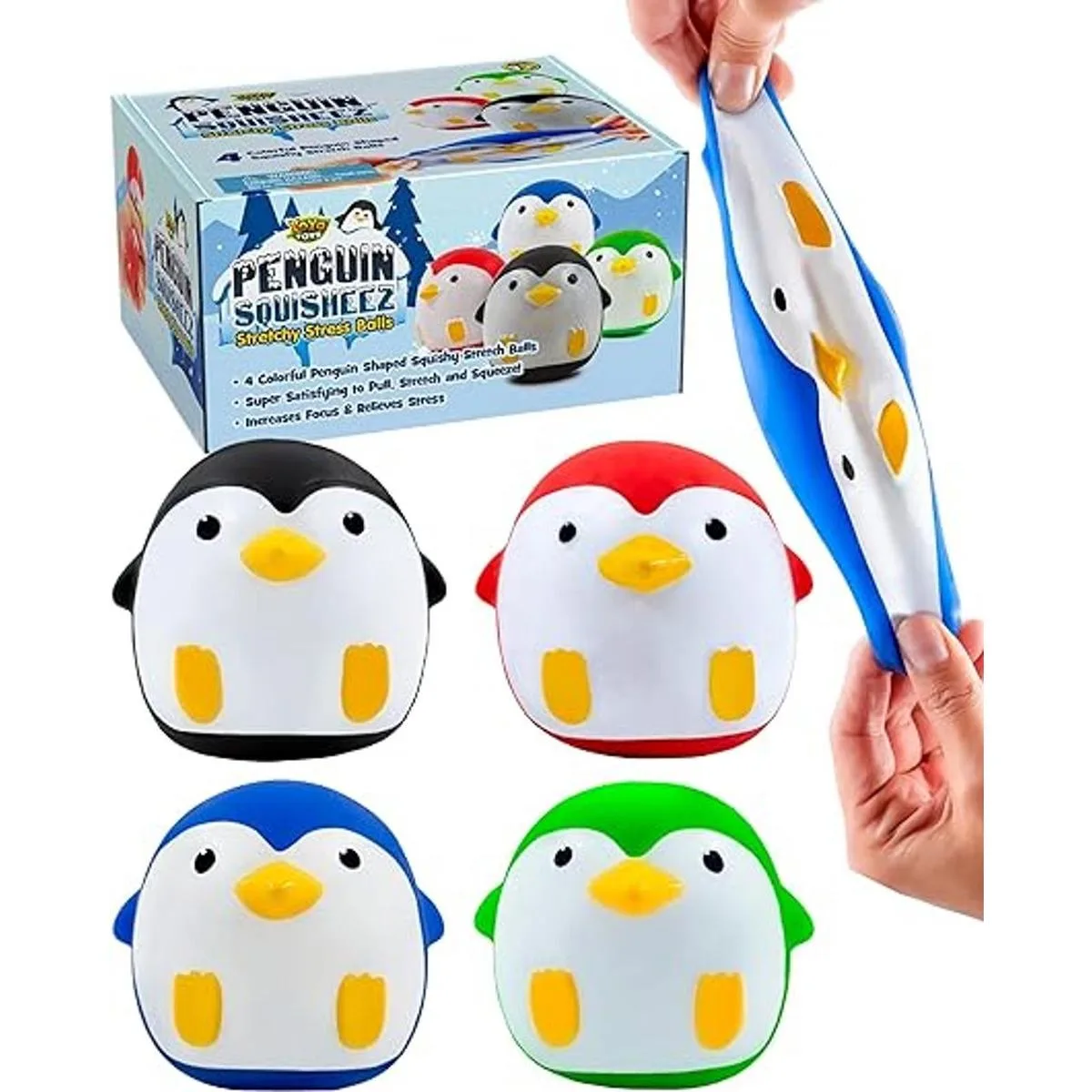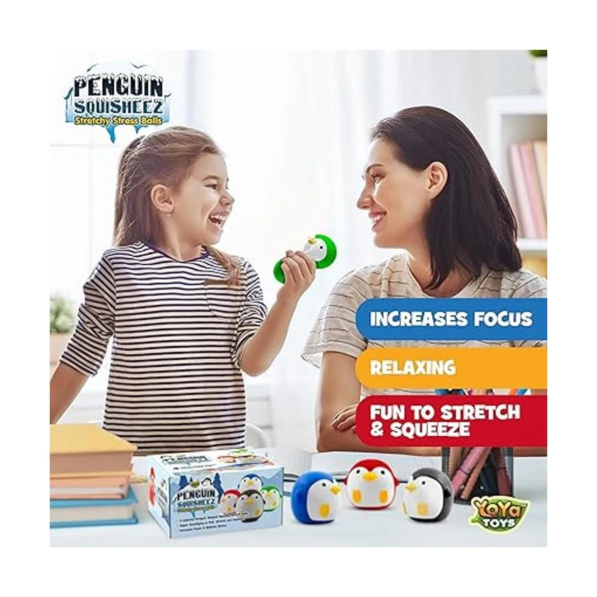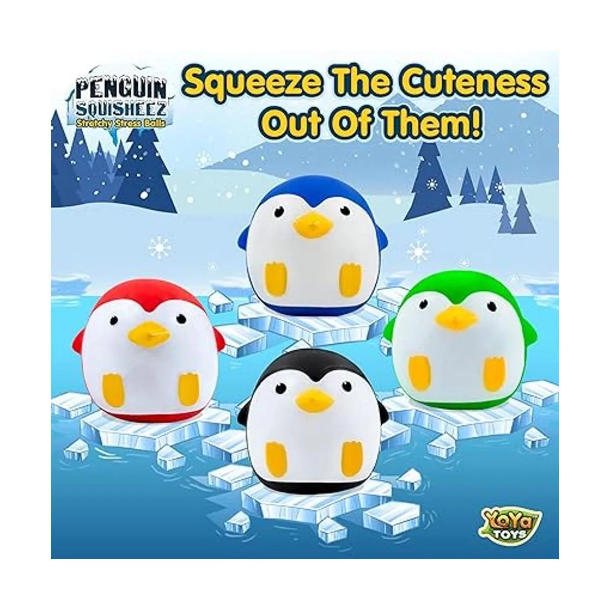 YoYa Toys Penguin Squisheez Bolas de alivio del estrés juego de 4 Juguetes elásticos con forma de animal para niños, niñas y adultos Juguete sensorial elástico para apretar pinginos Ideal para TDAH, autismo y ansiedad