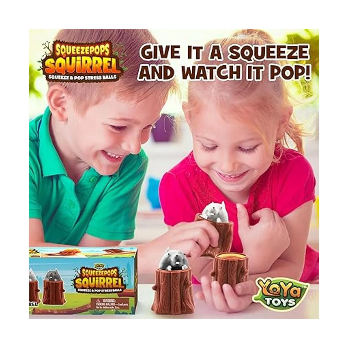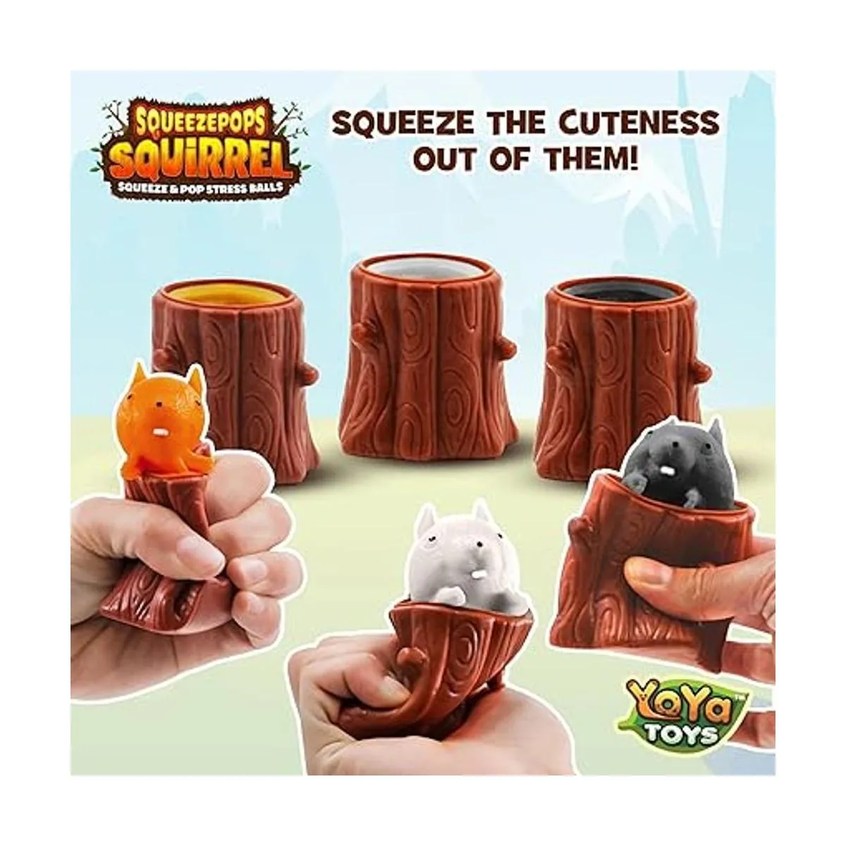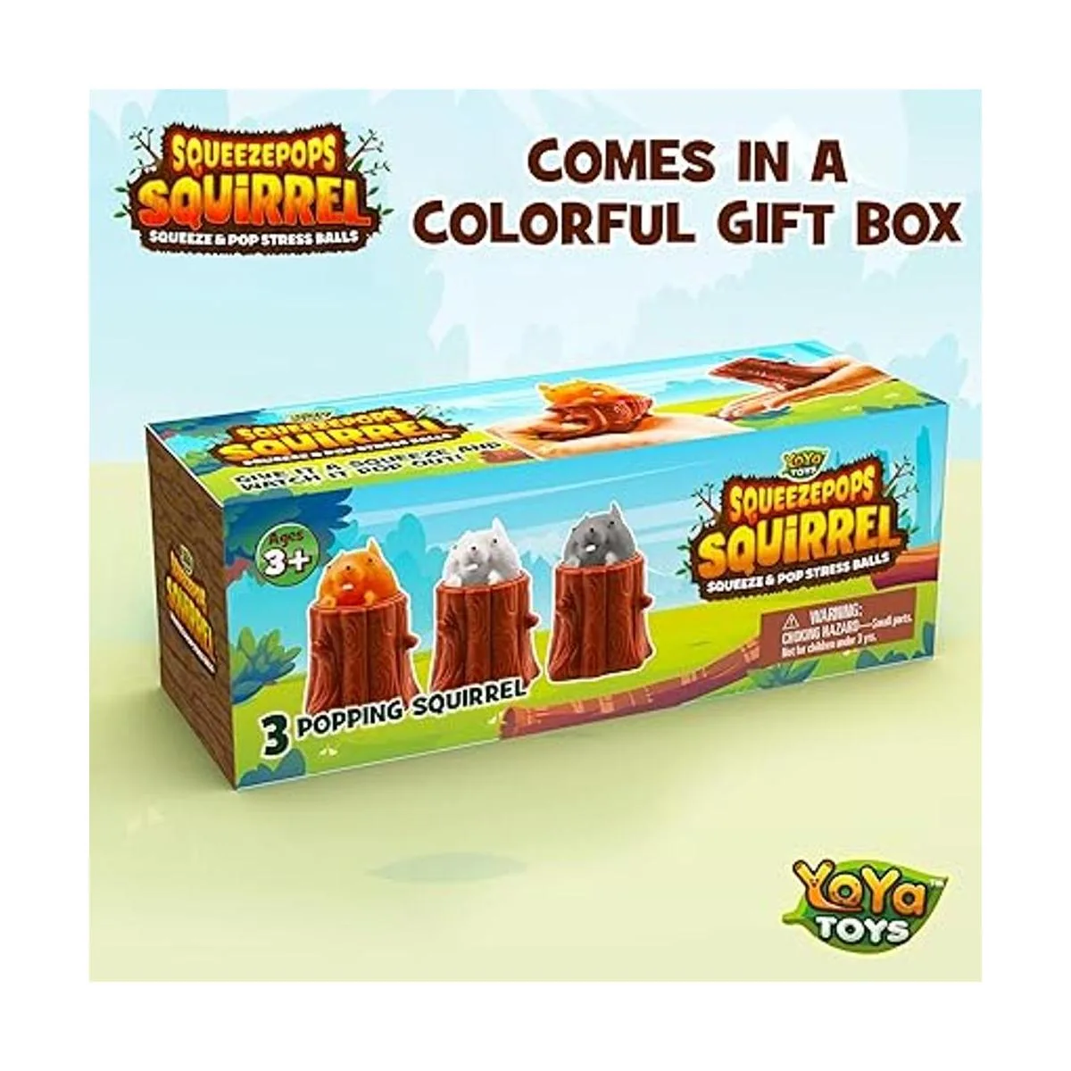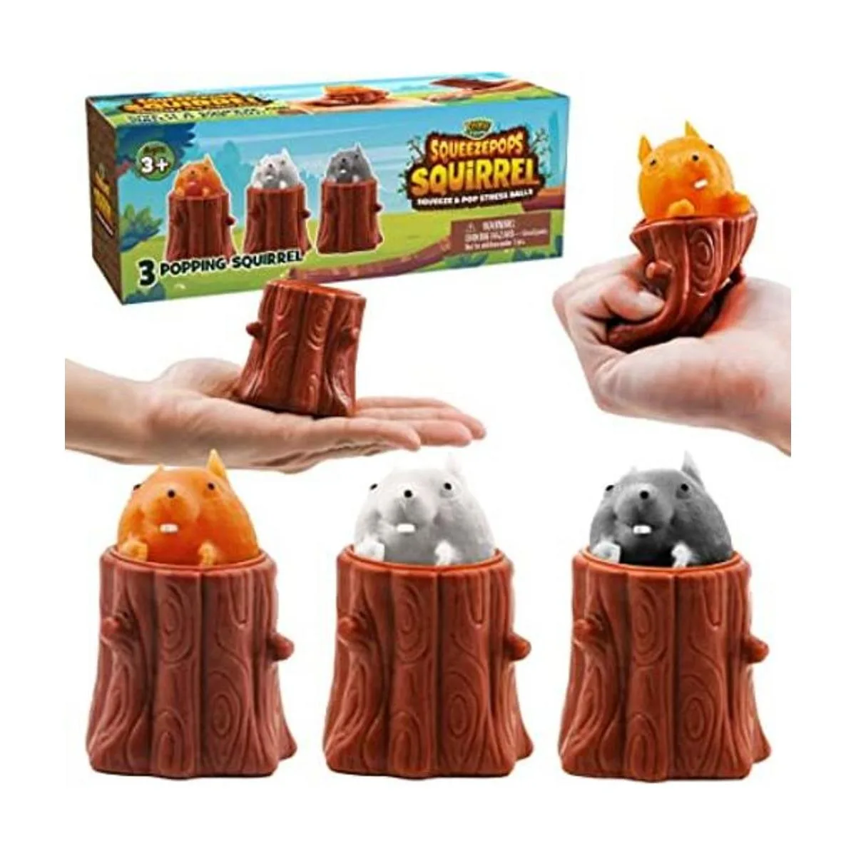 Yoya Toys Squeezepops Juguete para apretar ardilla en troncos, juguete para ansiedad de ardilla, juguete para ansiedad emergente, ardilla de juguete para niños, ardilla para apretar, autismoTDAH Juego de 3 juguetes de ardilla