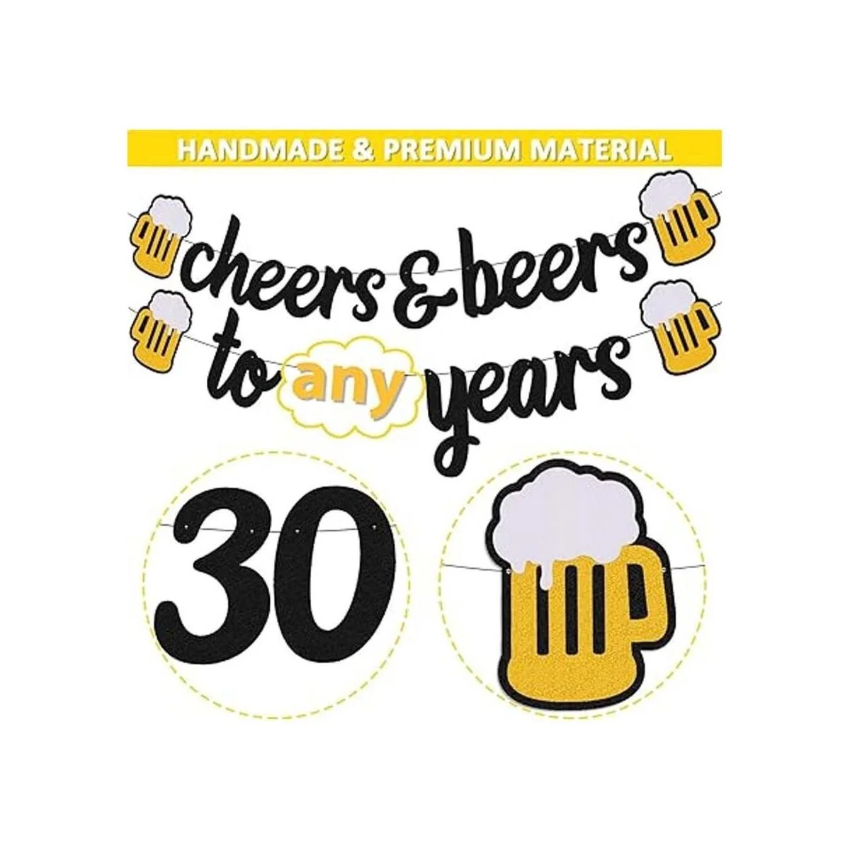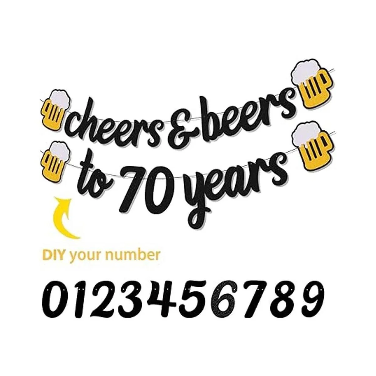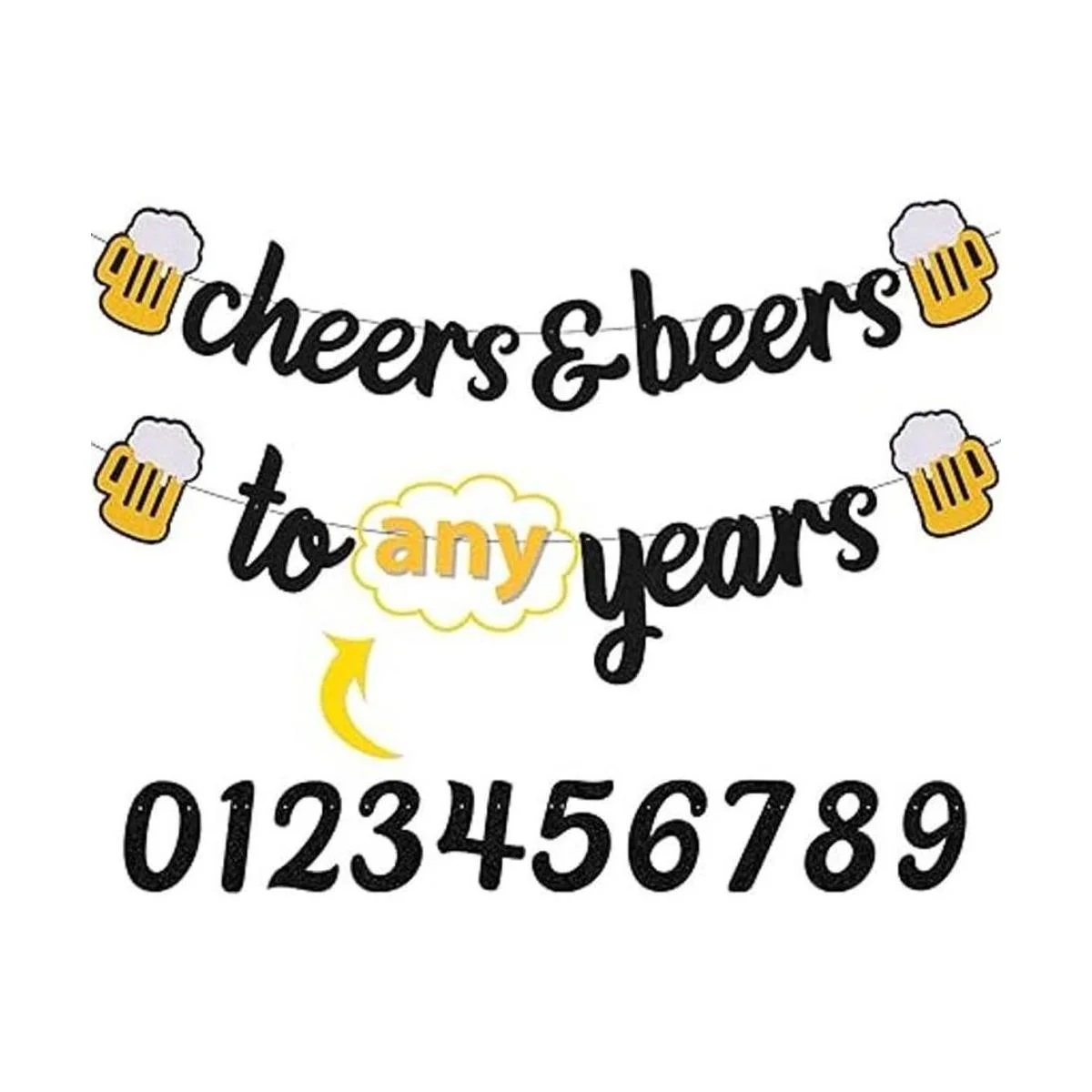 Calidad premium y grandes decoraciones: la pancarta Cheers any year está hecha de cartulina pesada negra brillante de alta calidad. Maravilloso para tu fiesta temática de cumpleaños, fiesta de aniversario de boda, fiesta de jubilación, etc.