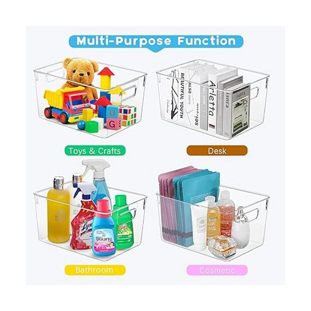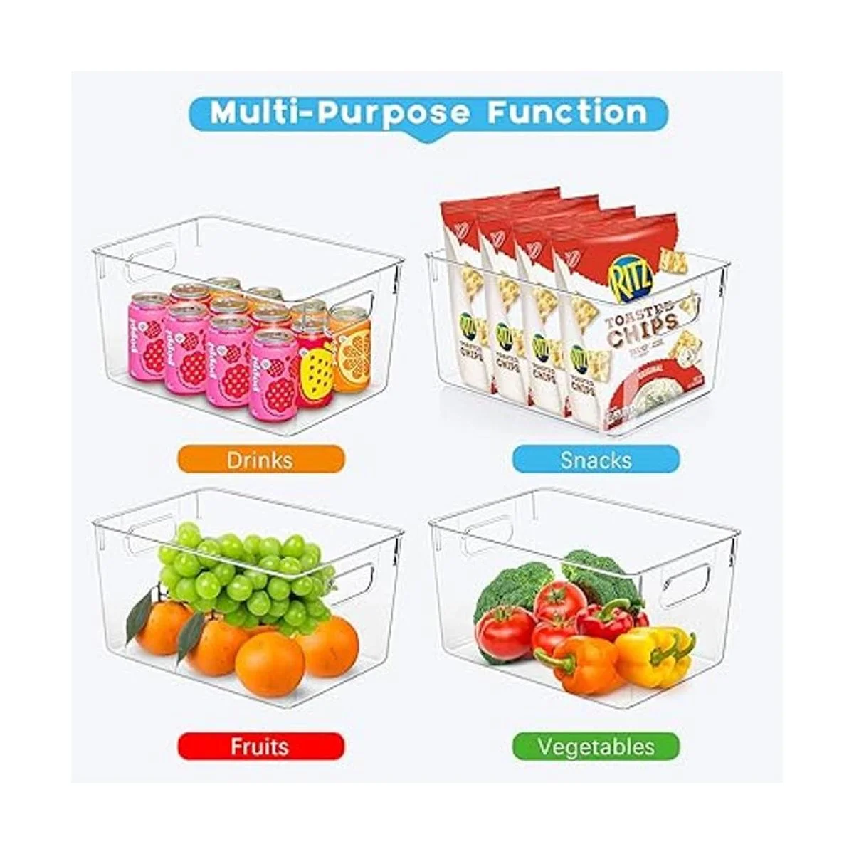 Maximiza el espacio: los recipientes de plástico son espaciosos para almacenar artículos, mantenerlos organizados y maximizar el espacio. Las cestas de almacenamiento de plástico son ideales para almacenar alimentos empaquetados, suministros de horneado, aperitivos, alimentos en caja, juguetes. También se puede utilizar perfectamente como organizador de refrigerador para frutas, verduras, productos enlatados, leche