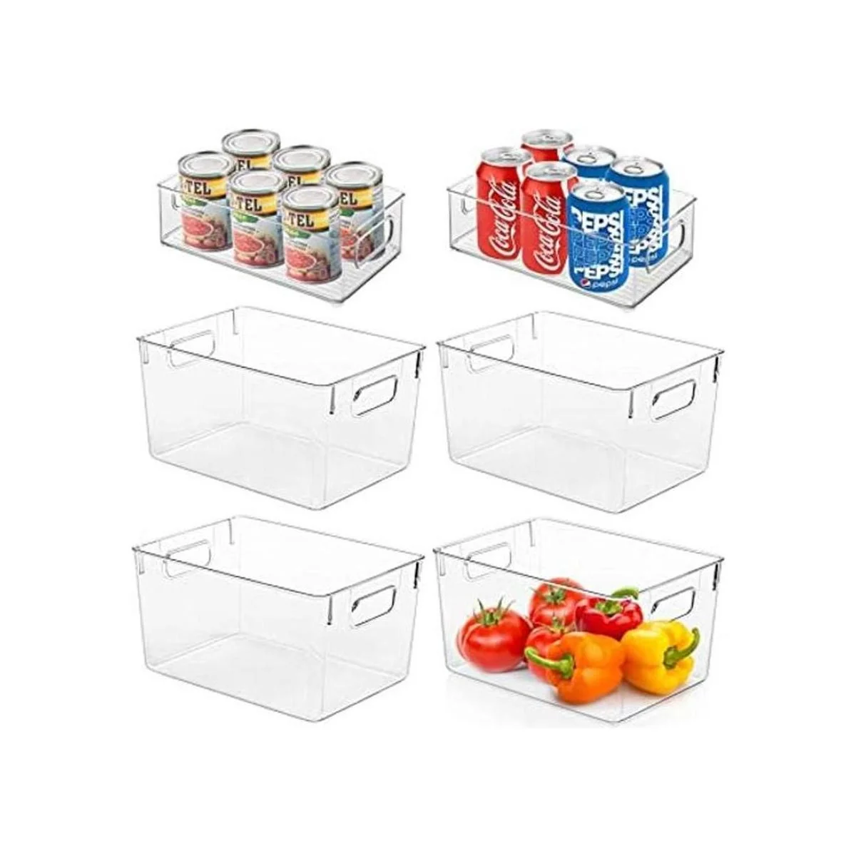 YOZATIA Contenedores de almacenamiento de plástico transparente, juego de 6 organizadores de cocina y almacenamiento, organización de despensa y almacenamiento, organizador de refrigerador, organizador de congelador, organizador de gabinete